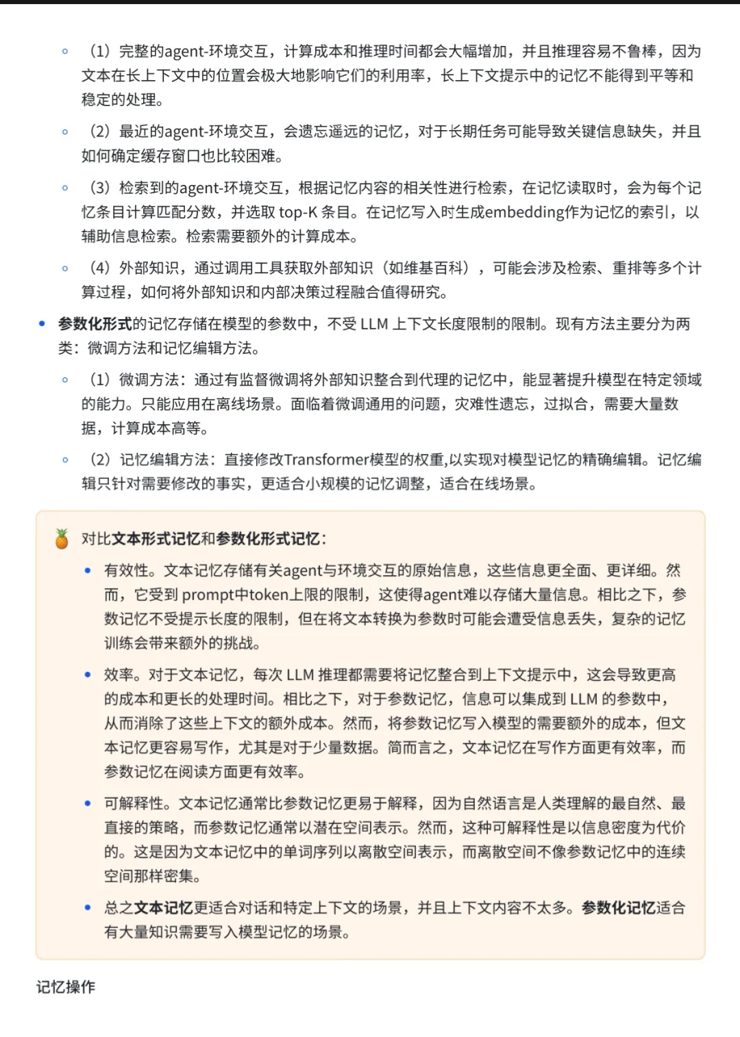 [晚安R]记忆的来源可以来自与环境的交互过程,以及外部知识库;记忆的形式主要有自然语言和参数化两种形式;agent在与环境交互的过程中,会涉及读记忆,记忆管理,写记忆三个过程。