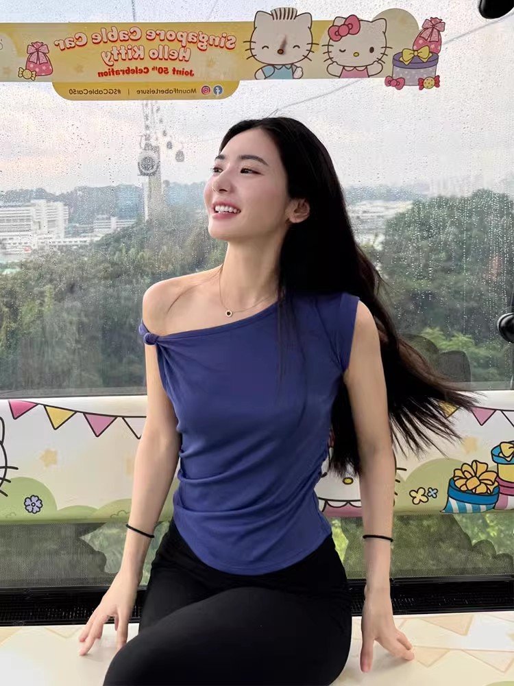 小个子一字肩无袖背心短款小上衣女春秋季绝
