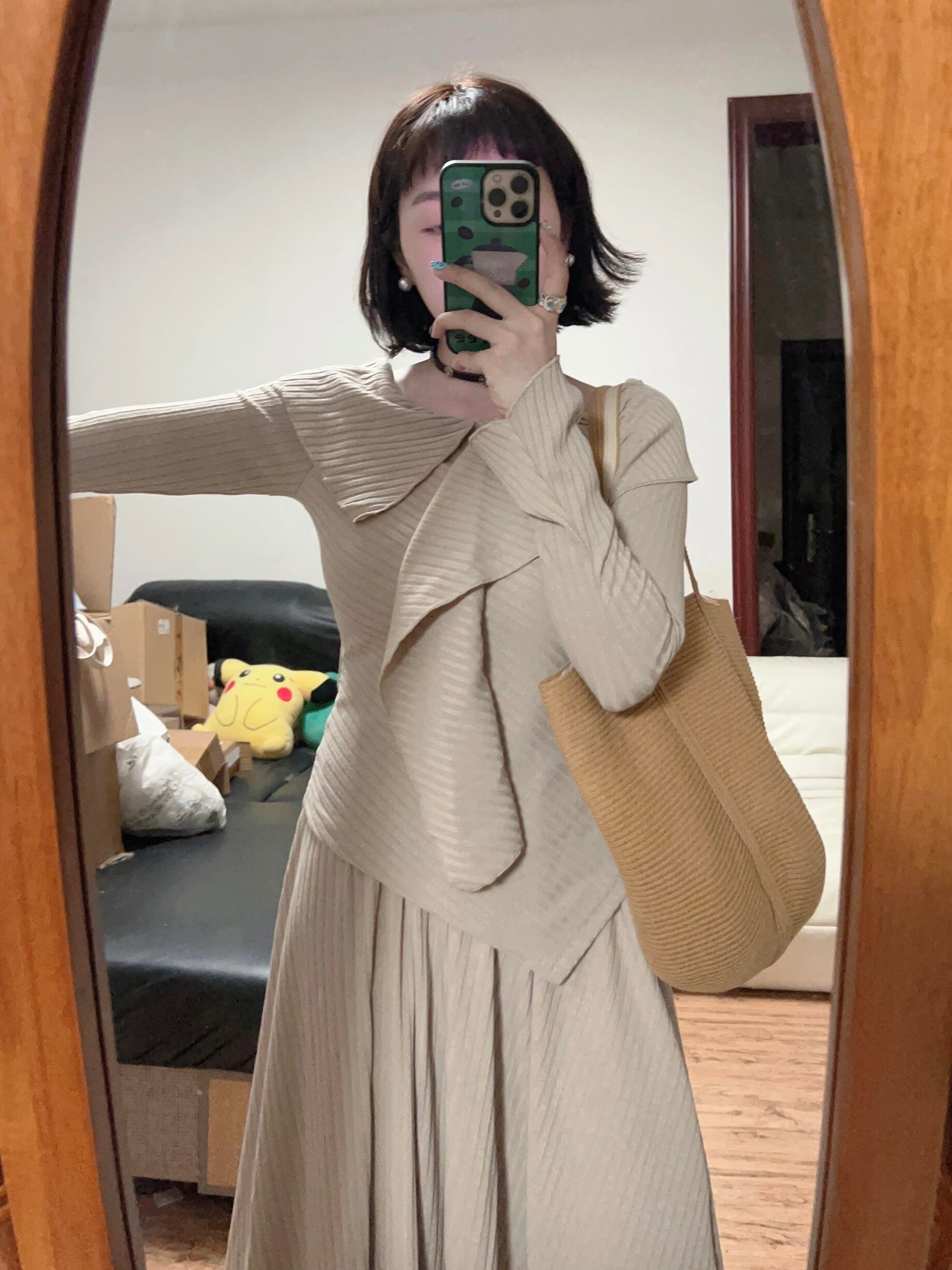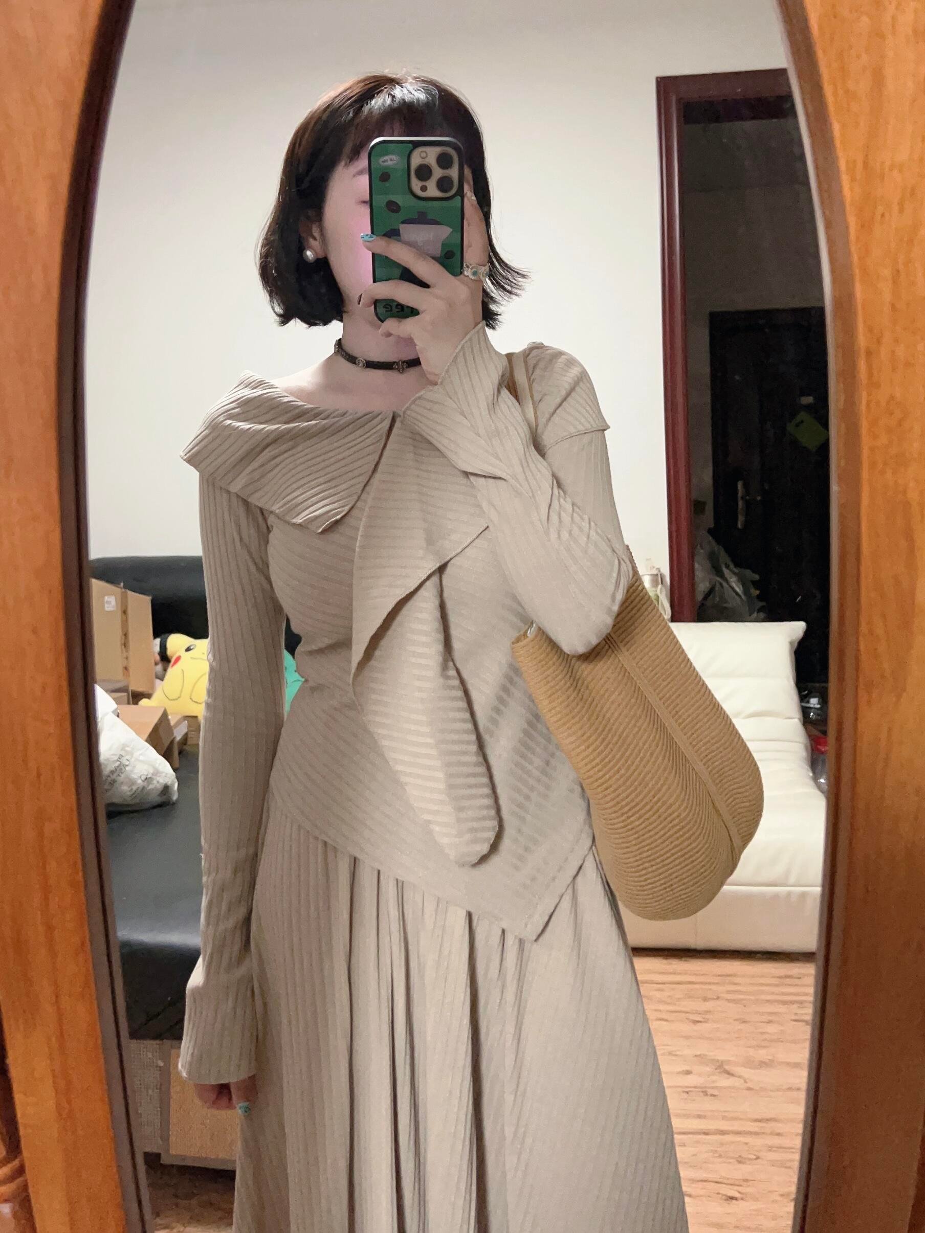 春季新款一字肩连衣裙子过新年穿搭套装女2025秋冬高级感内搭长裙