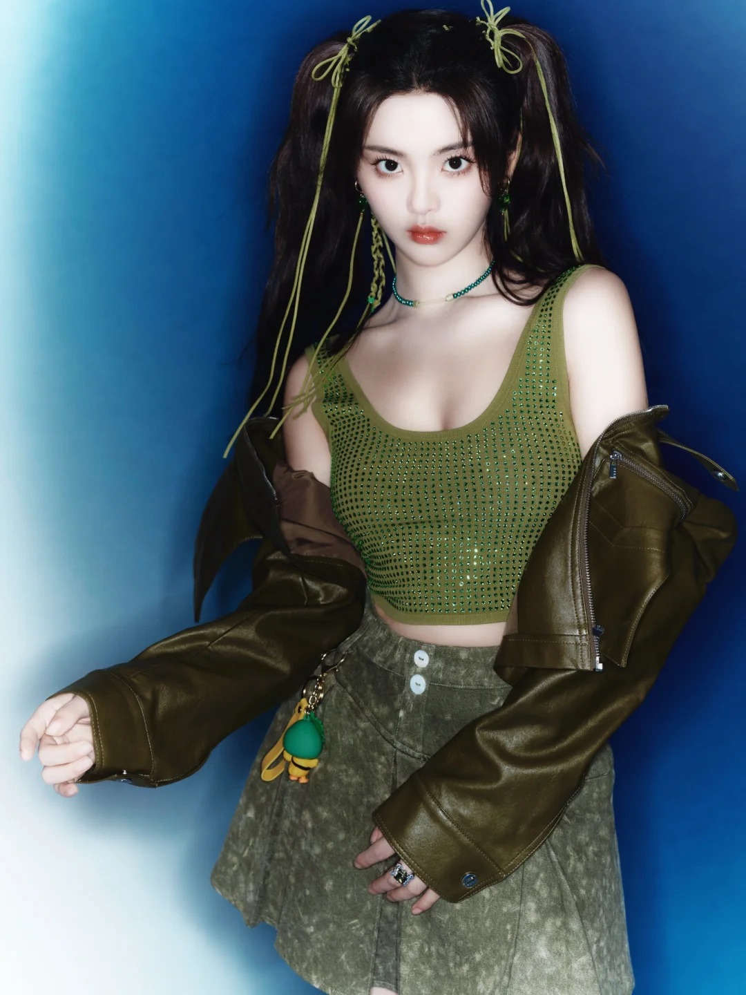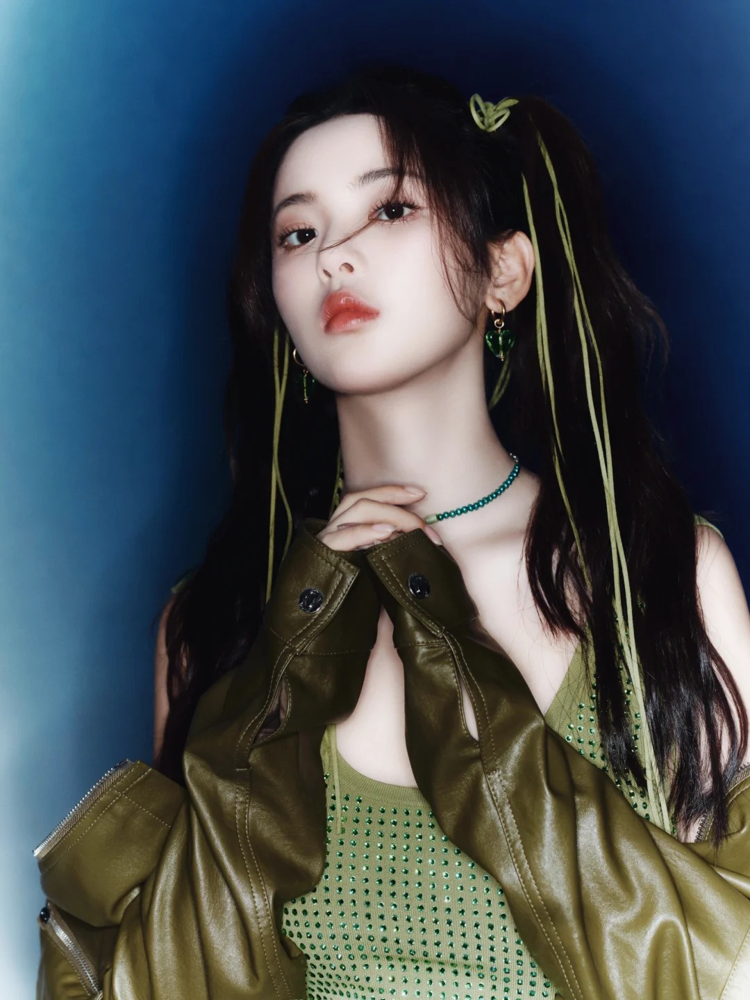 双马尾元气小杨,超越妹妹真的各位造型都能驾驭,撞色绿美的很突出