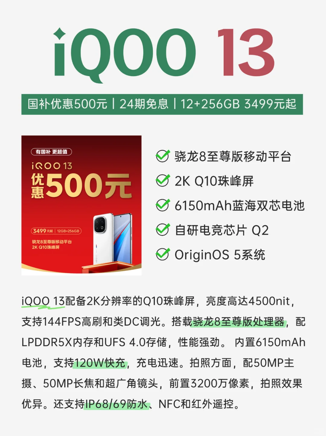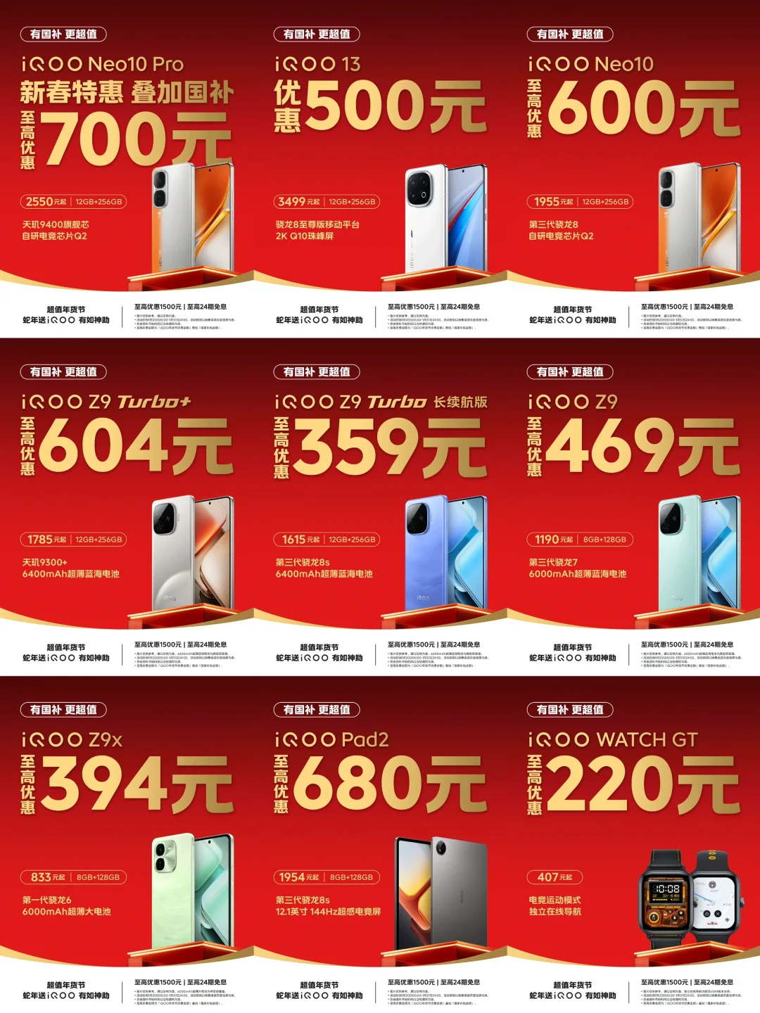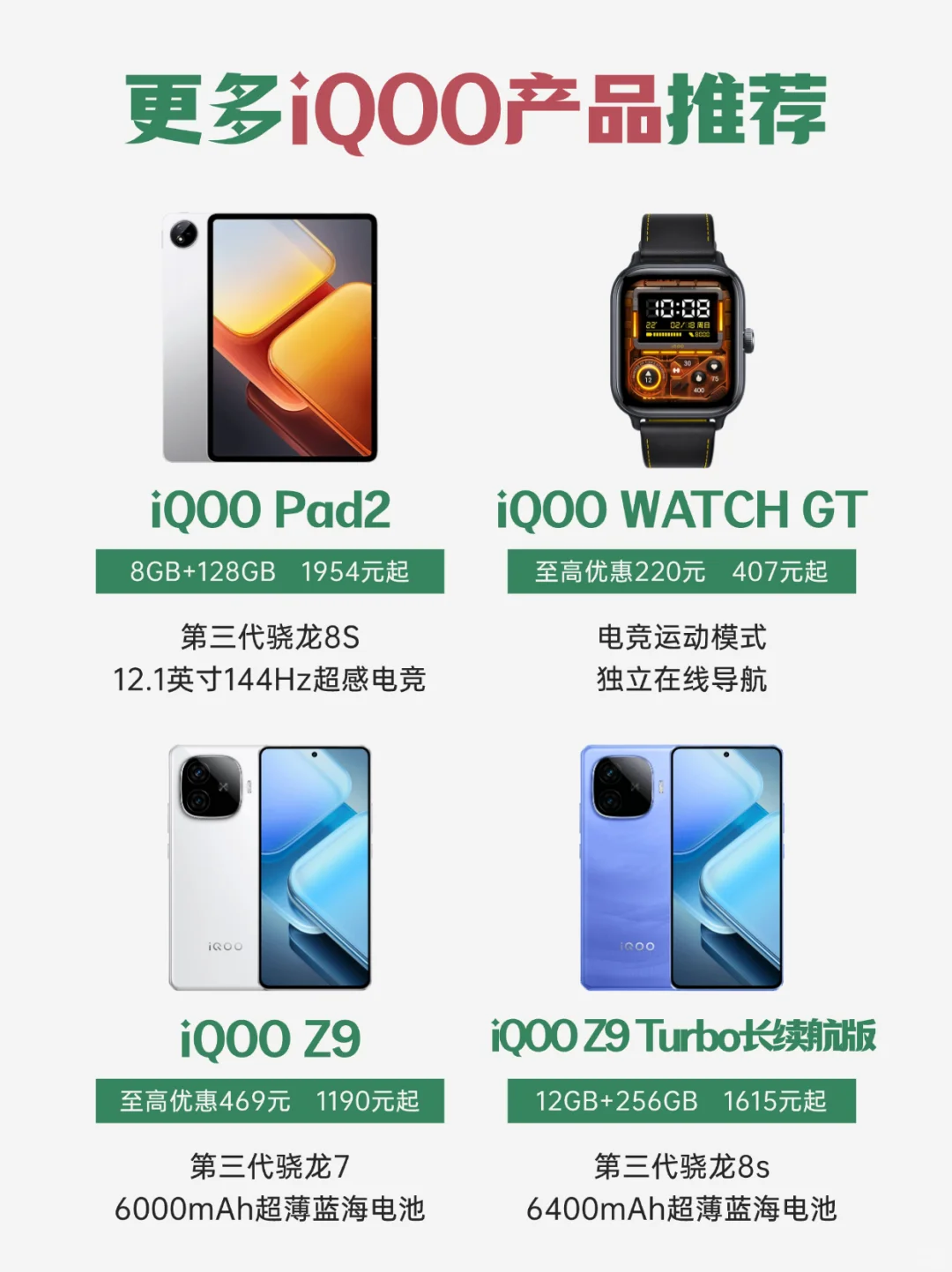 最后,除了以上推荐的几款,iQOO年货节,大额国补巨划算!全系产品都参补,至高优惠1500!,价格都很不错,可以去看一看噢。