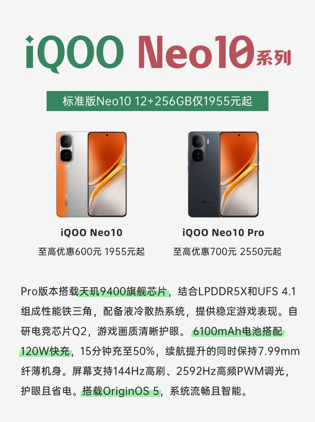 推荐2:iQOO Neo10系列,包括iQOO Neo10和iQOO Neo10 Pro两款。
