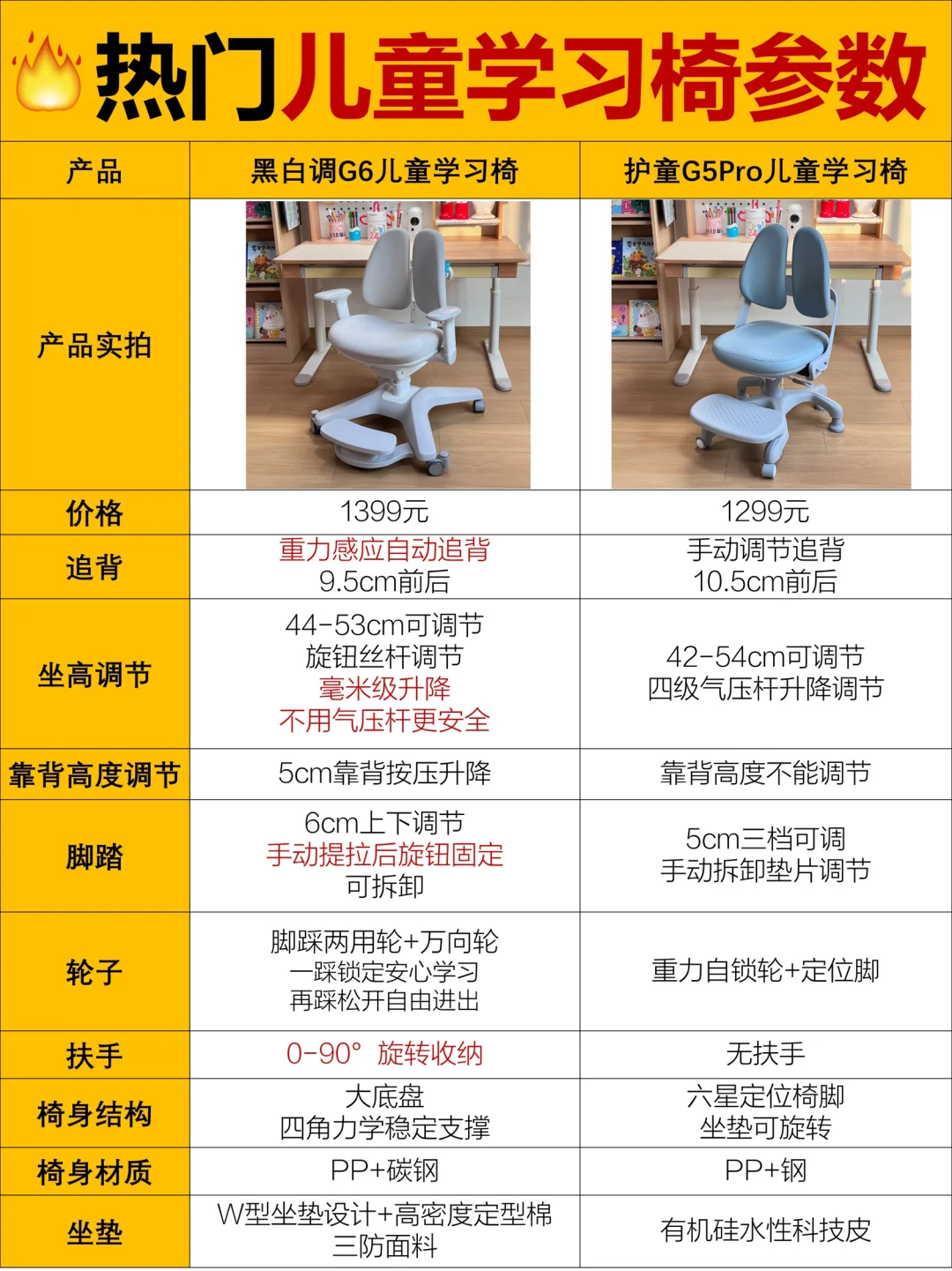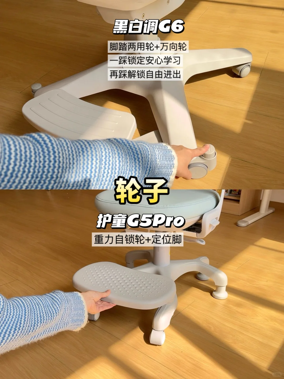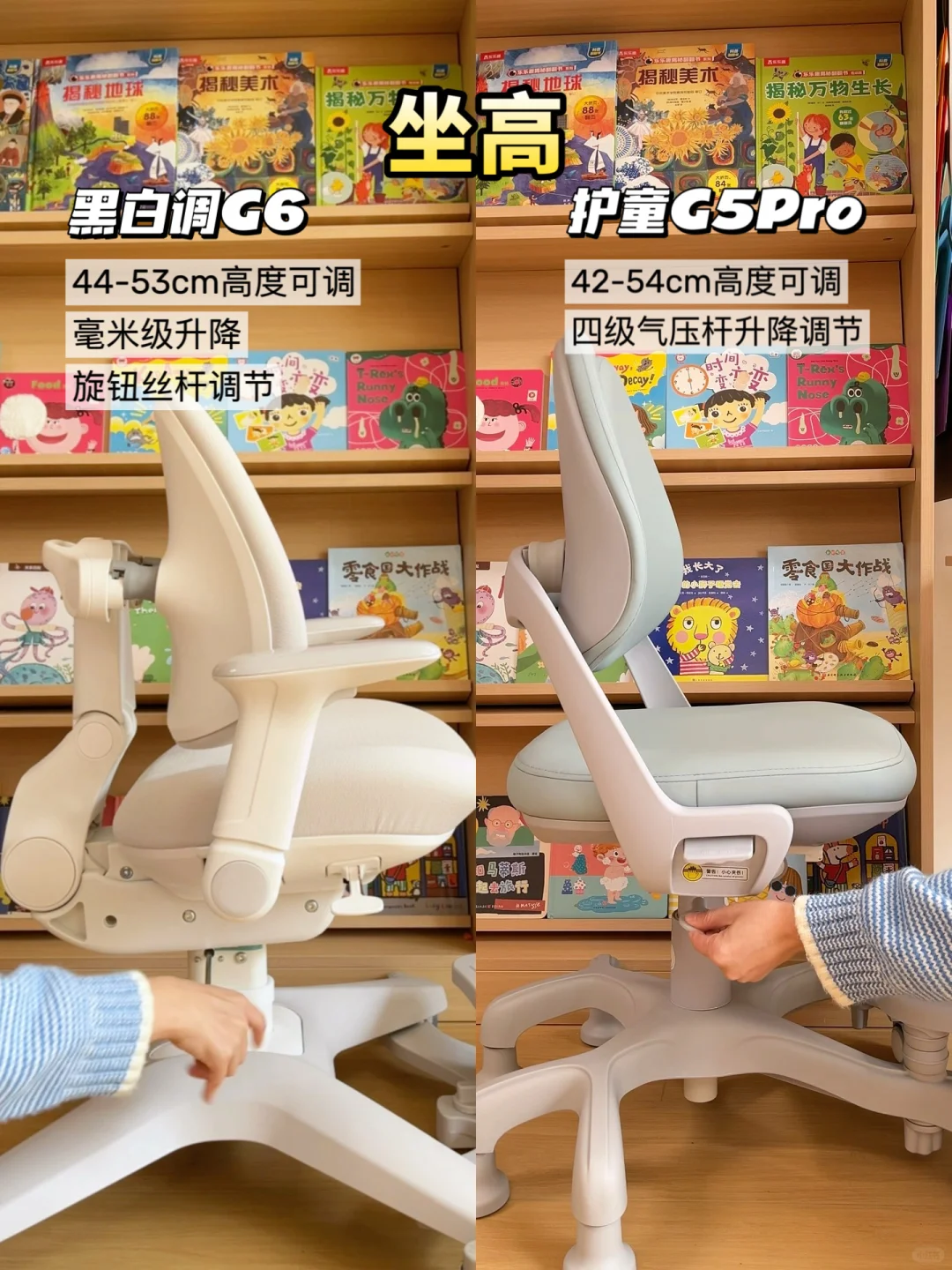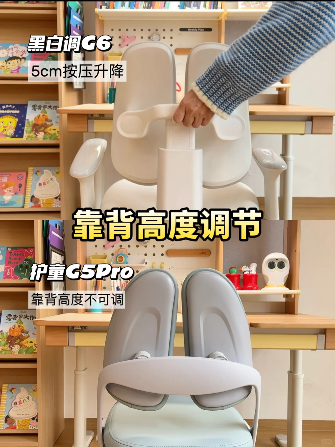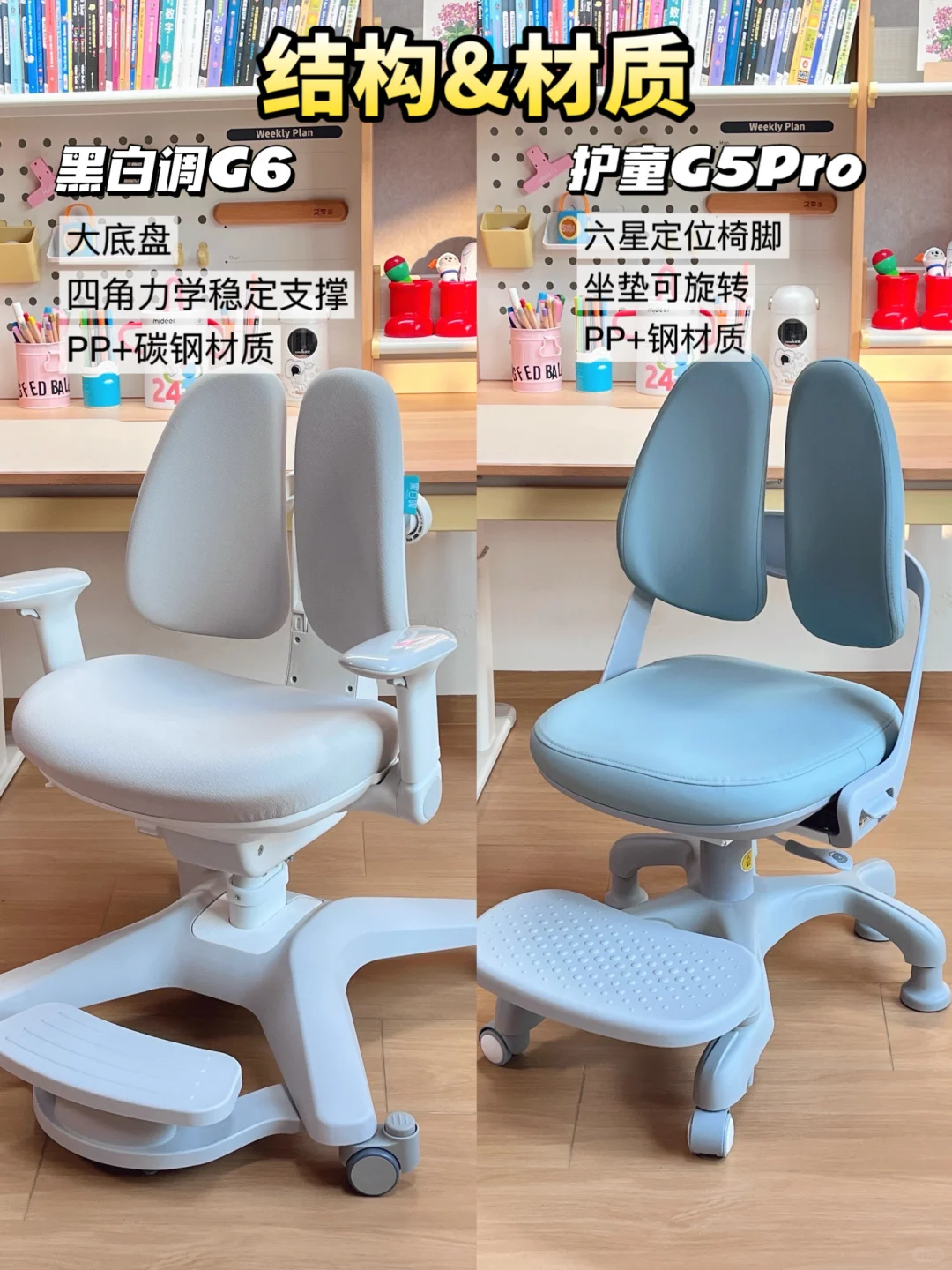 🧐今天我选了市面上热门的两款儿童学习椅,分别是黑白调G6儿童学习椅和护童G5Pro,给大家做一个实测分享。