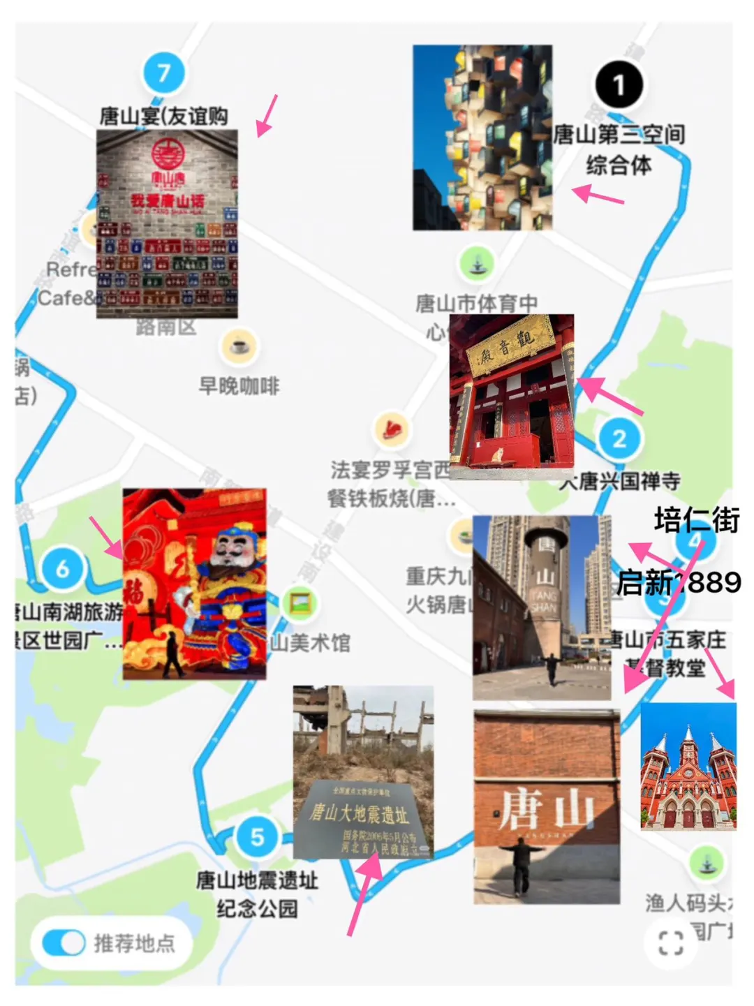 2⃣️第三空间综合体👉大唐兴国禅寺👉 培仁文化街👉 启新1889👉 五家庄教堂👉唐山地震遗址公园👉唐山南湖春节灯会👉 唐山宴