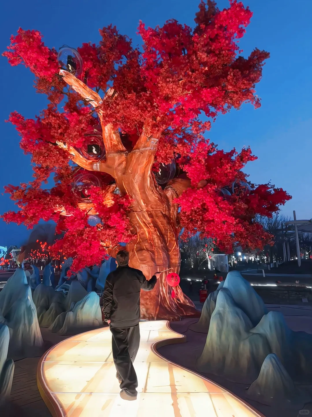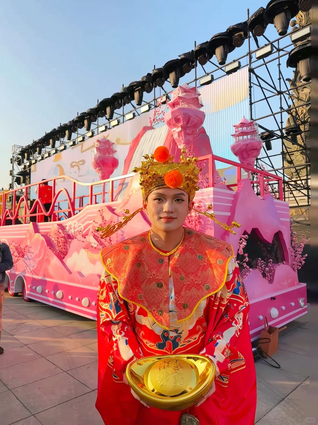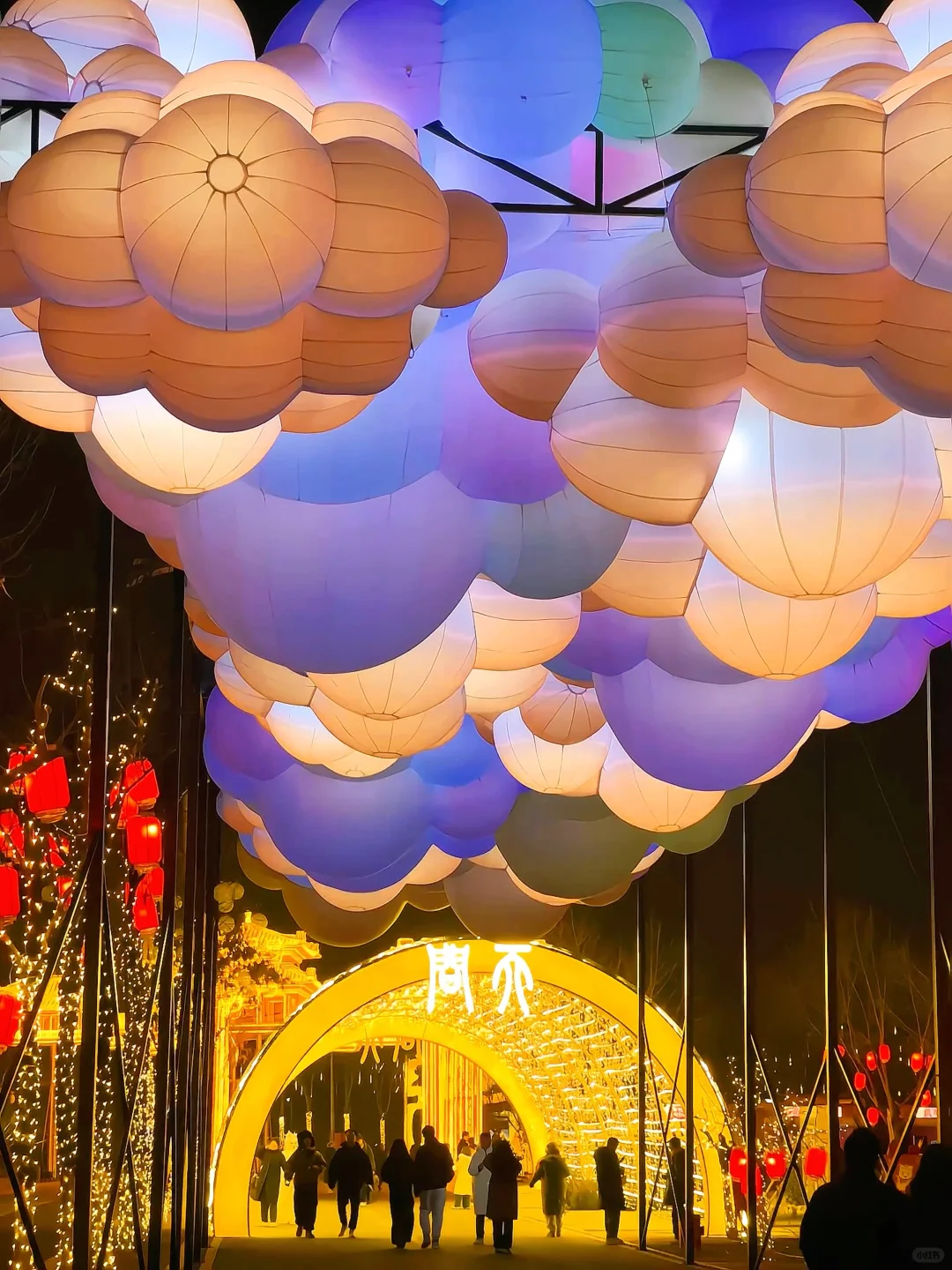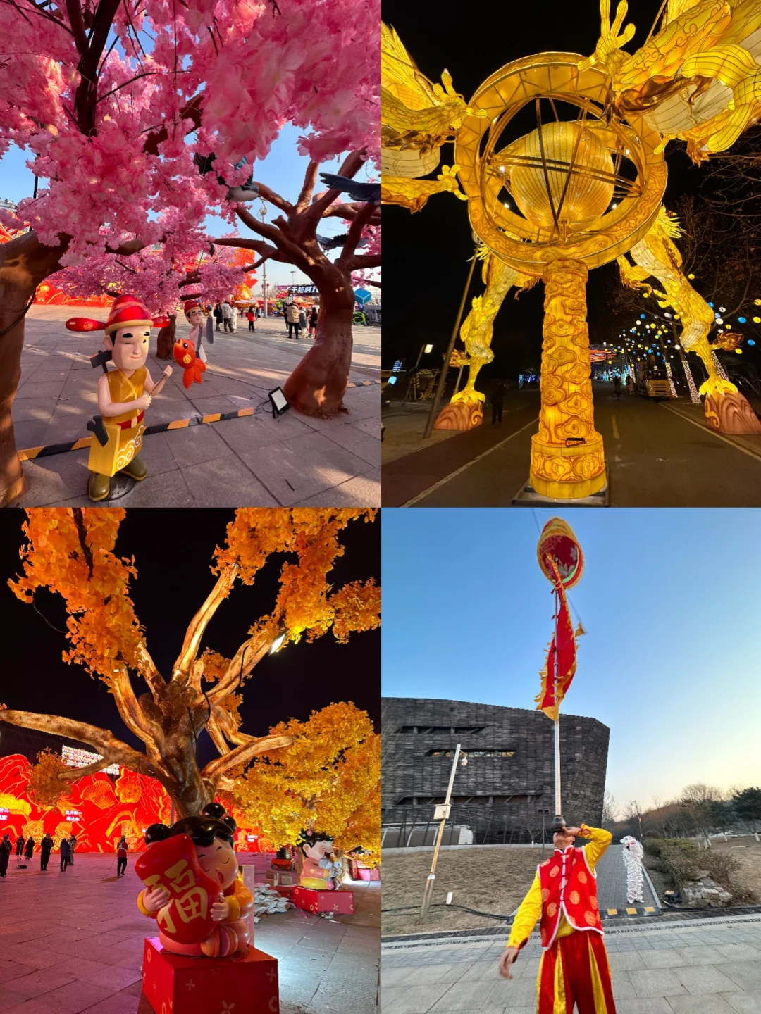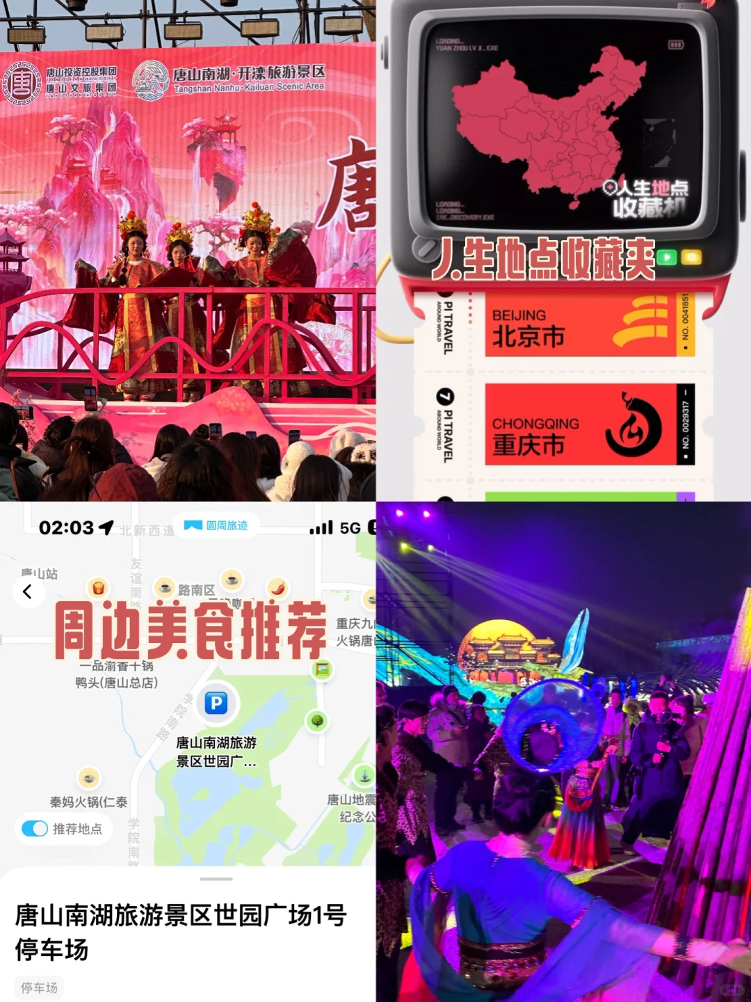 [拔草R]从唐山南湖•开滦旅游景区世园广场门进入,来到“年味中国”超大型灯组组成的U行广场,中间DJ舞台表演粉色桃花黄金林打卡发财