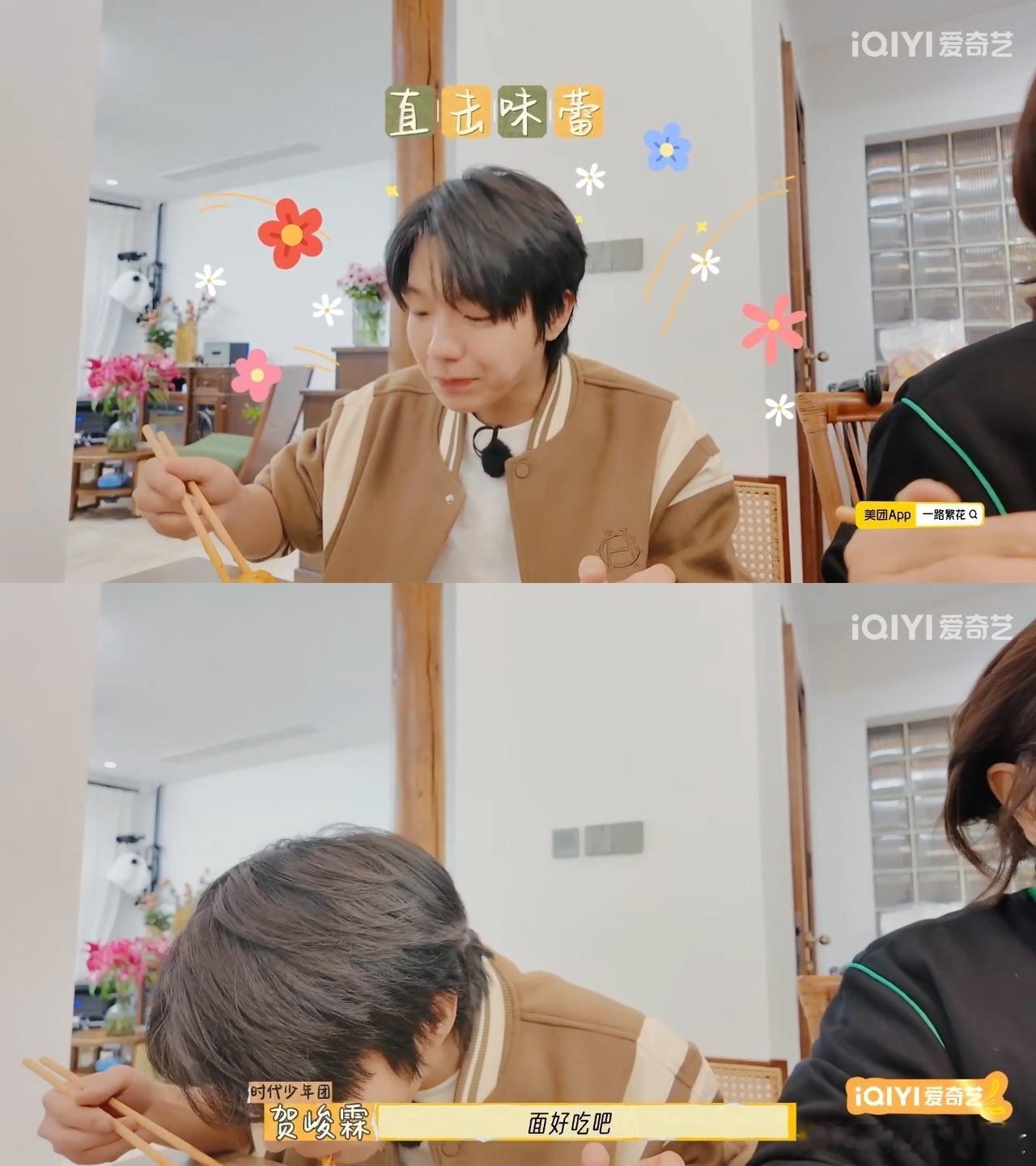 终于盼到贺峻霖大展厨艺,一碗油泼面做得色香味俱全。他自己尝完陶醉的表情,直接把繁花团姐姐们和屏幕前的我都拿捏住,这谁能忍住不馋!