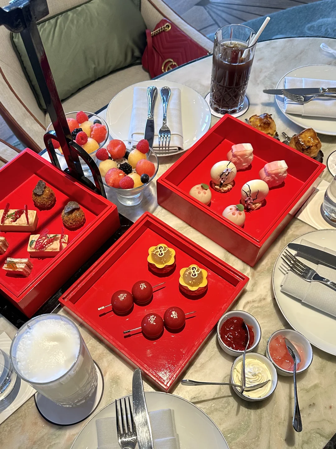 周末时间到 和好闺闺出门下午茶啦!华尔道夫的新春限定下午茶真的仪式感满满🍰 发财树在此 见者发财~