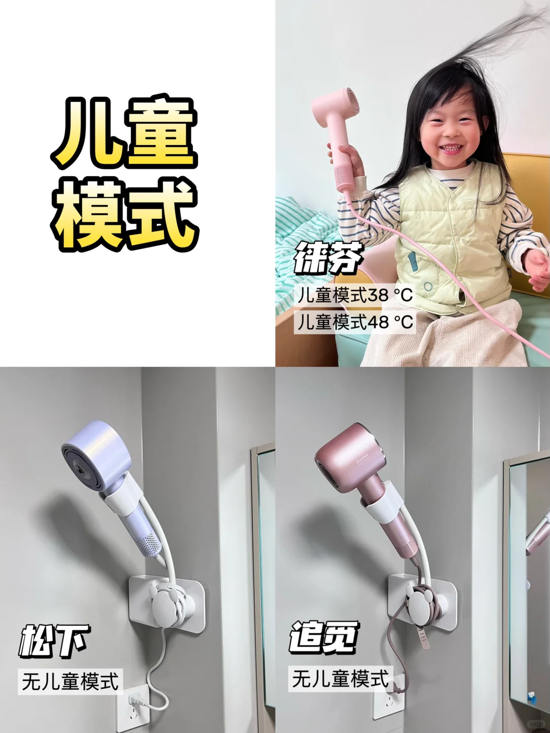关键看是否有儿童模式!👧🏻孩子的头发细软,风温需要更温和一些,有专门的儿童模式,就不用额外再买儿童专用吹风机了!又省了一笔💰!