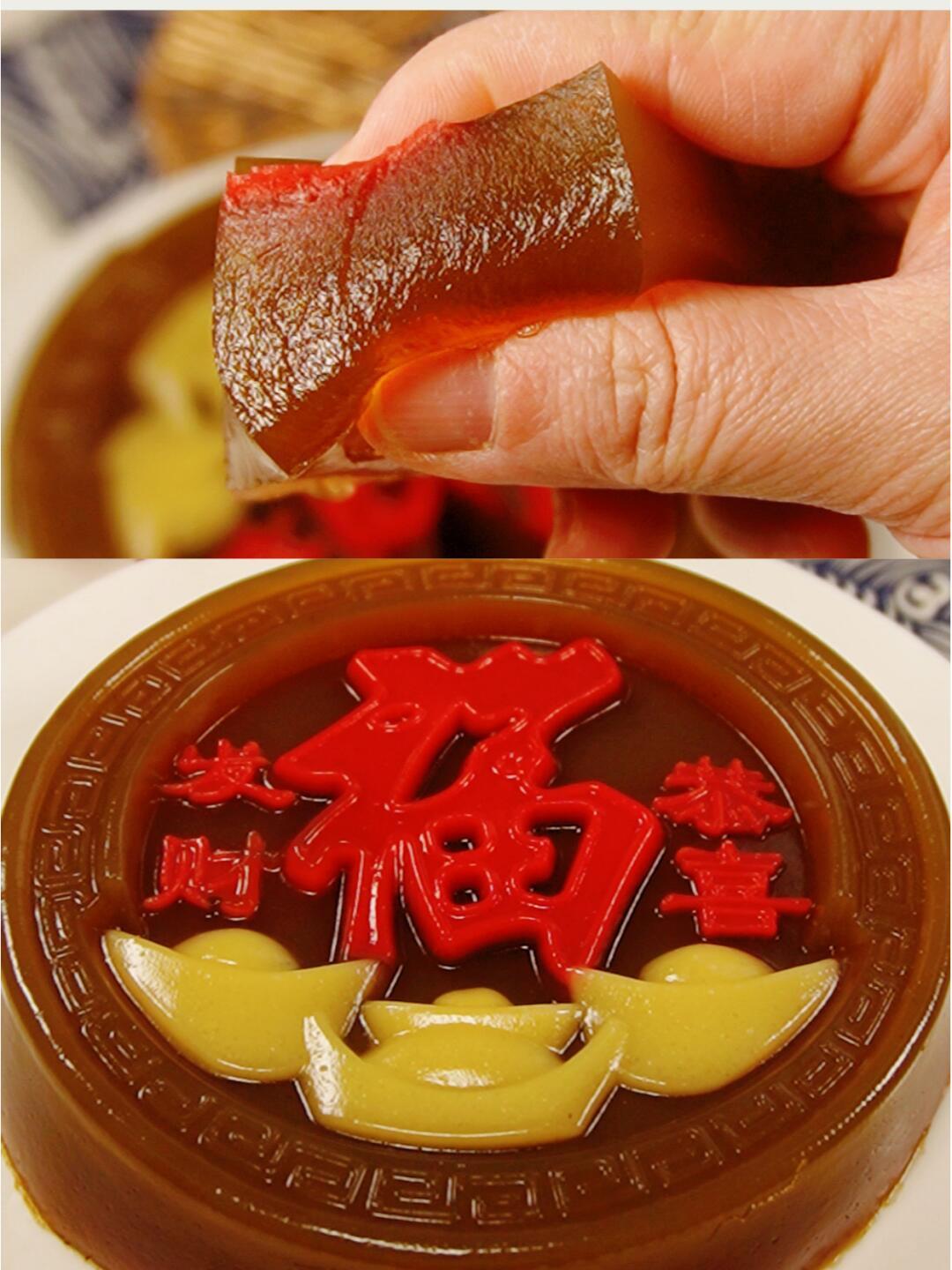 [恭喜发财]菜名:红糖福字马蹄糕。