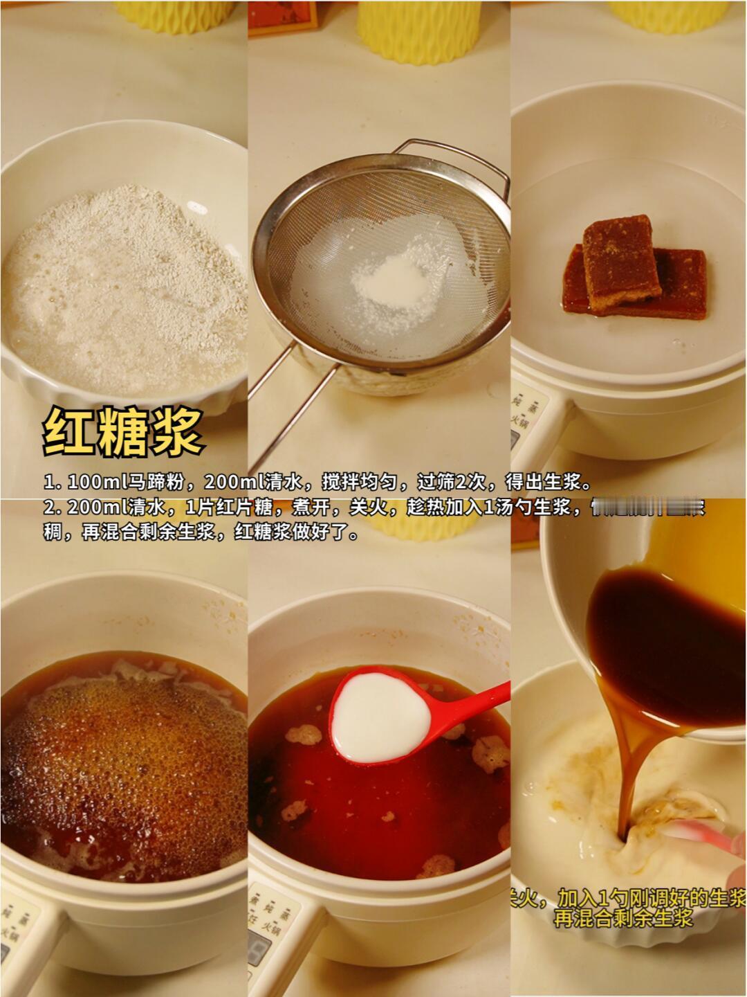 (马蹄粉会沉淀,每次舀浆之前先搅匀!蒸的时间按火力和厚度调整没有白芯/表面边干变硬就是熟了)