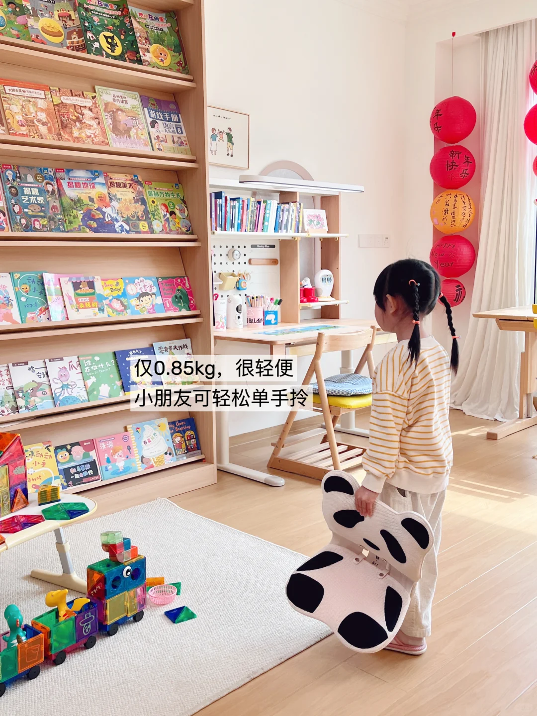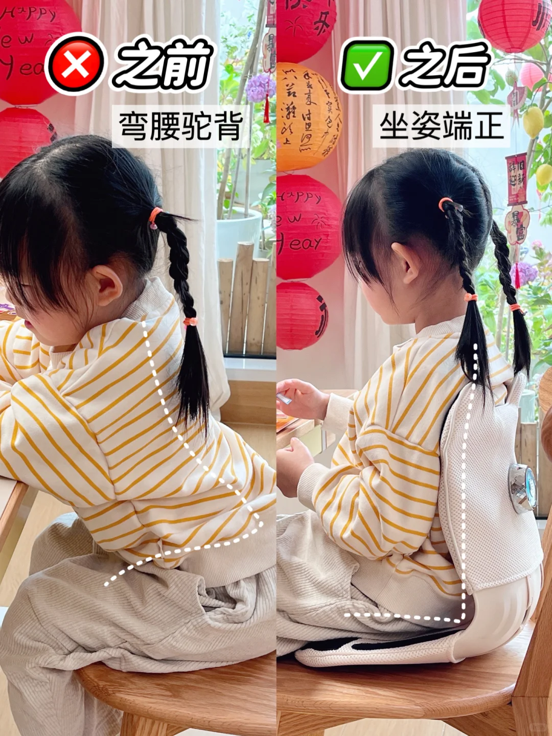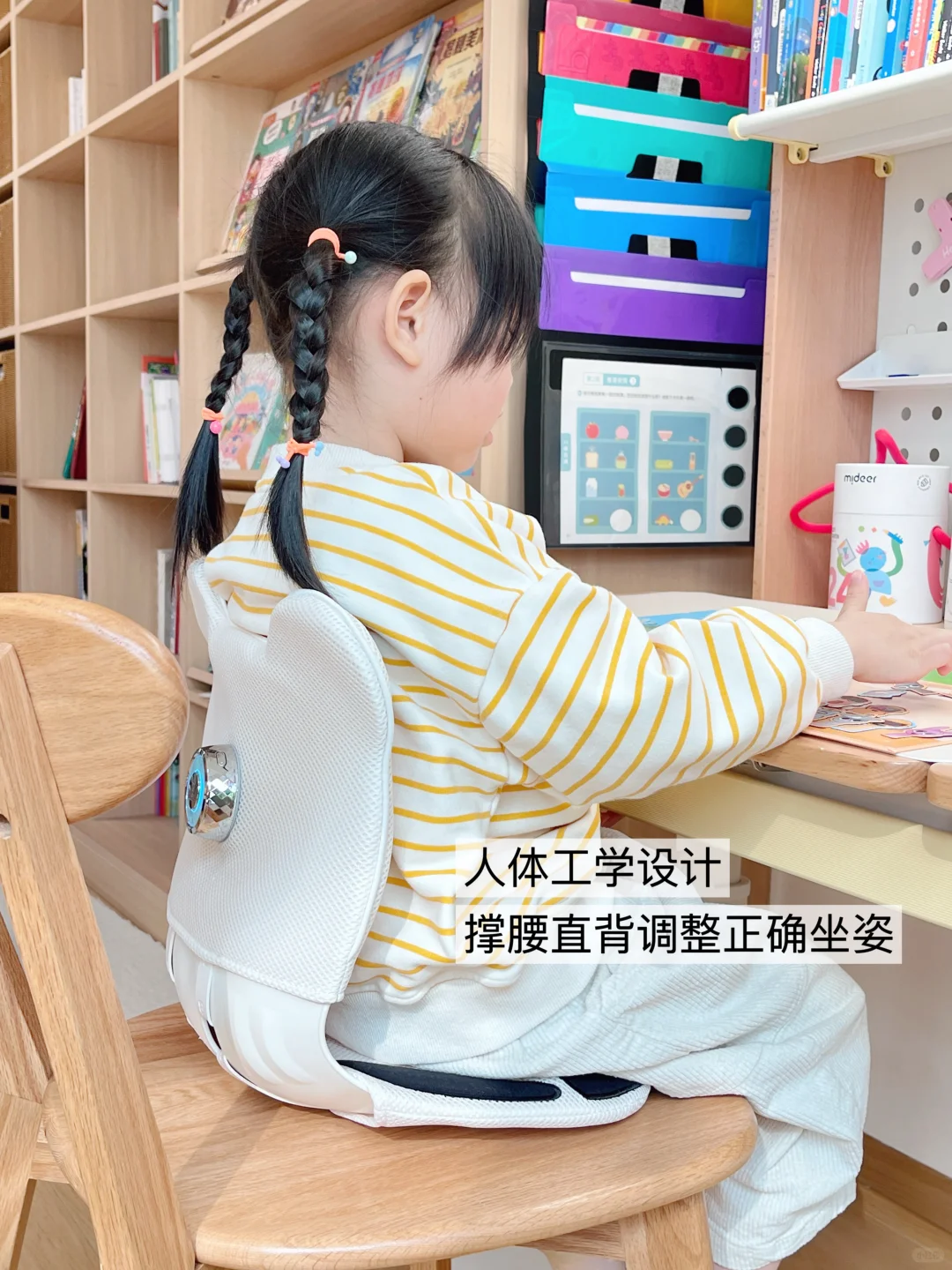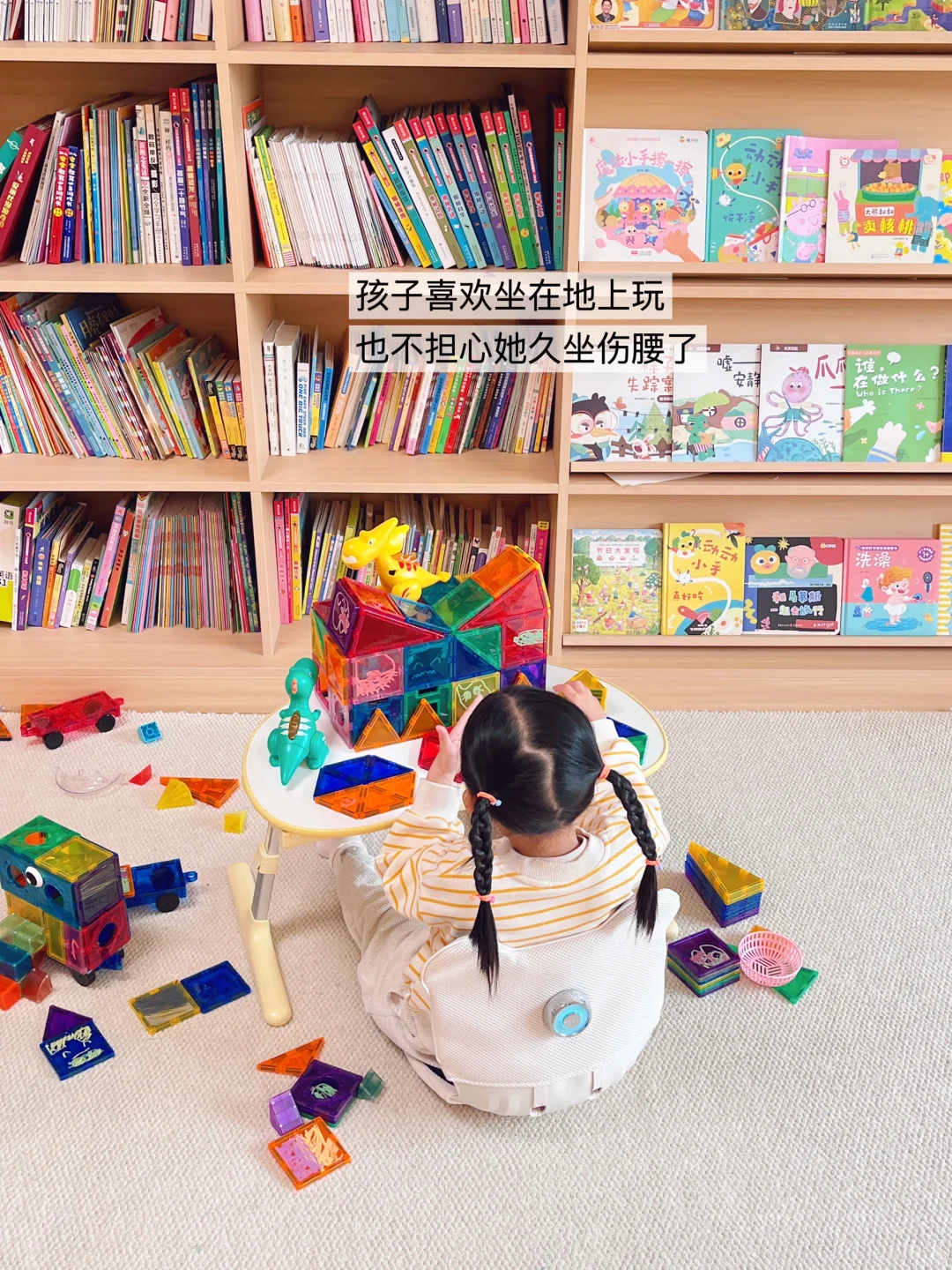 但我发现👀,孩子不会老老实实坐好,我还得时刻提醒她保持正确坐姿!🔺重点是孩子还不按套路出牌,喜欢随地而坐,尤其是经常久坐在地板上玩,我就很担心她经常趴桌或者弯腰弯背的,形成不良体态还伤腰😮💨!