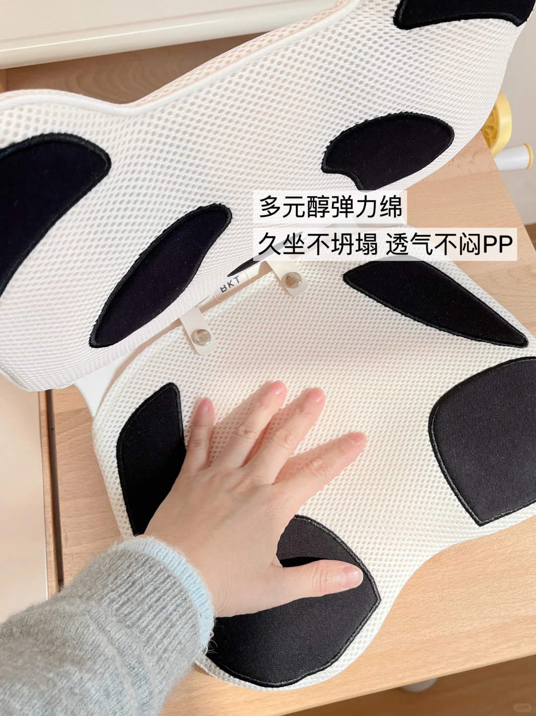 重点是这款BKT护腰坐姿椅设计得非常小巧轻便☁️,我女儿4岁+的小朋友都可以轻松单手拎。而且还是多元醇弹力绵的材质以及镂空的通风设计,孩子久坐也不就觉得闷热坐不住。