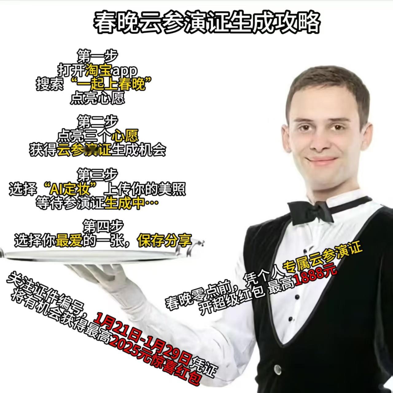 我已经领到啦!春晚云参演,真是科技与艺术的完美结合!这操作我给满分,期待你的表演!让我们在家也能感受到浓浓的年味和欢乐!