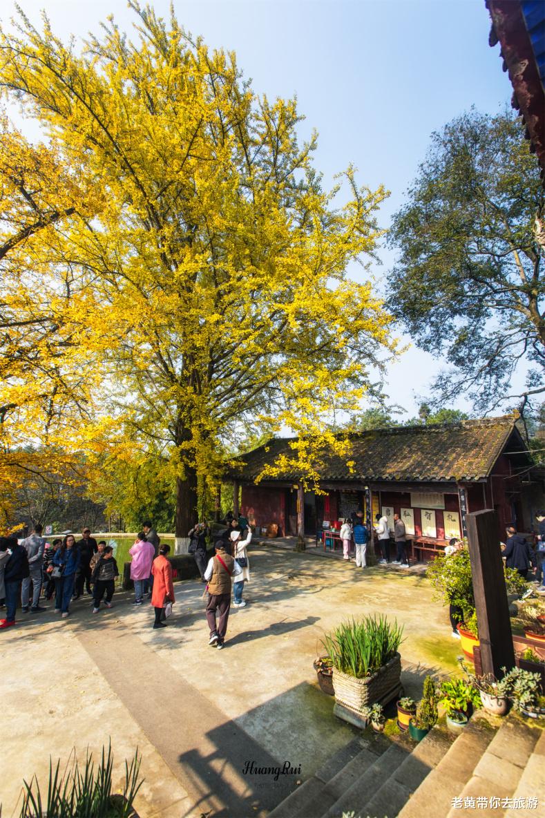 目前佛荫寺能让游客观光的范围并不大,最主要也是最重要的就是天王殿,这里可以进香供奉。但是游客绝大多数都不是为此而来,而是为了殿前两棵大银杏树。听说这两棵树已有600多年历史,而且是难得的夫妻树。这两棵树不仅是重庆市目前最大的雄雌双株古银杏树,还传说当年建文帝曾扶树而哭,留下了握指的痕迹。目前银杏树叶已经全部变黄,非常漂亮。特别是投射着阳光,更显金光闪闪。毫不夸张的说,就是因为这两棵大银杏,才让这座古刹重新回到大众视野。如今,佛荫寺成为重庆市民追逐秋色尾巴的重要打卡地。