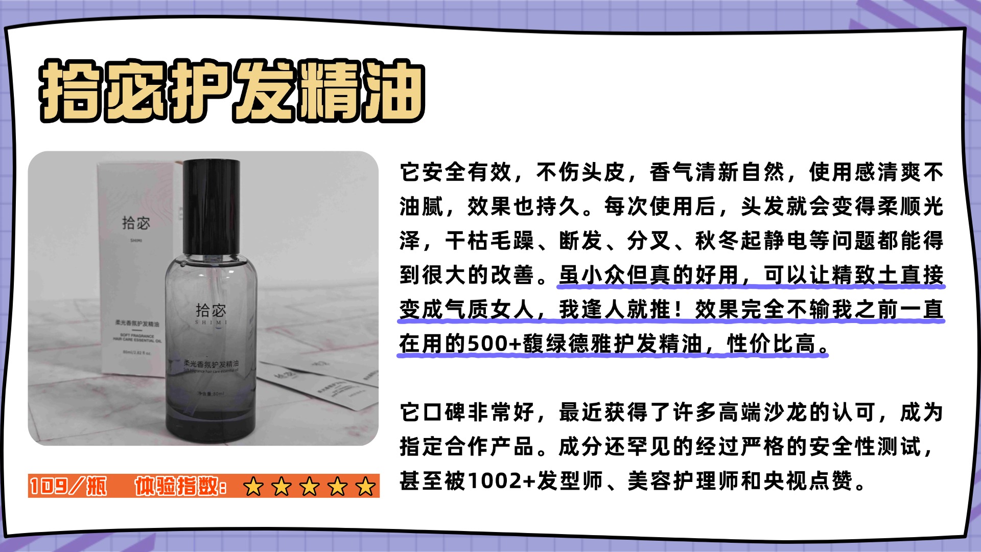 市面上有很多平价护发精油,如何挑选一款既好用又不贵的呢?很多人疑问,平价的护发精油到底能不能有效改善毛躁和干枯发质?答案是肯定的。首先要了解,护发精油的关键作用是滋润和修复发丝,针对干枯发质,尤其是染烫后的头发,精油中的植物成分可以有效补充水分,修复受损发质。但是,平价精油与高端精油在成分和效果上有所不同,通常高端精油会添加更多天然植物精华,修复效果更显著。对于预算有限的朋友,选择含有椰子油、葡萄籽油或者霍霍巴油等成分的精油,既能达到滋润效果,也不会让头发感觉油腻。关于如何判断一款护发精油是否值得购买,下次我会详细讲解选购技巧,大家记得点赞收藏哦!