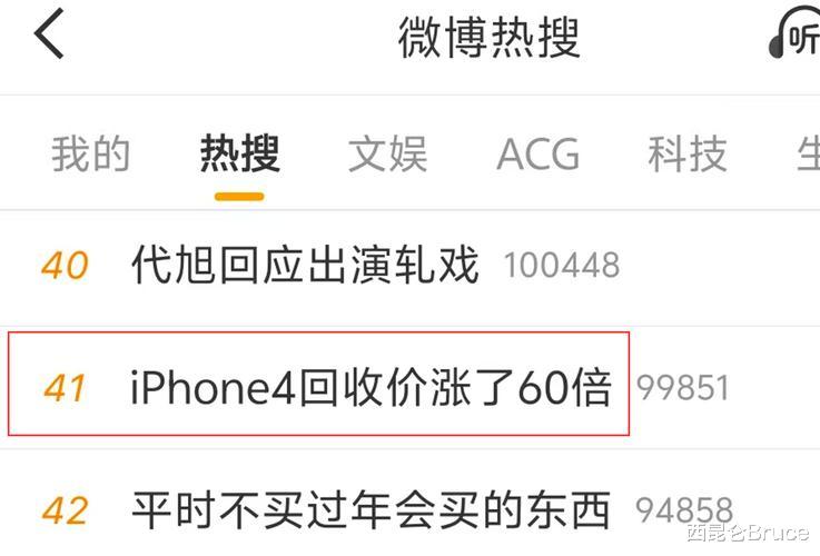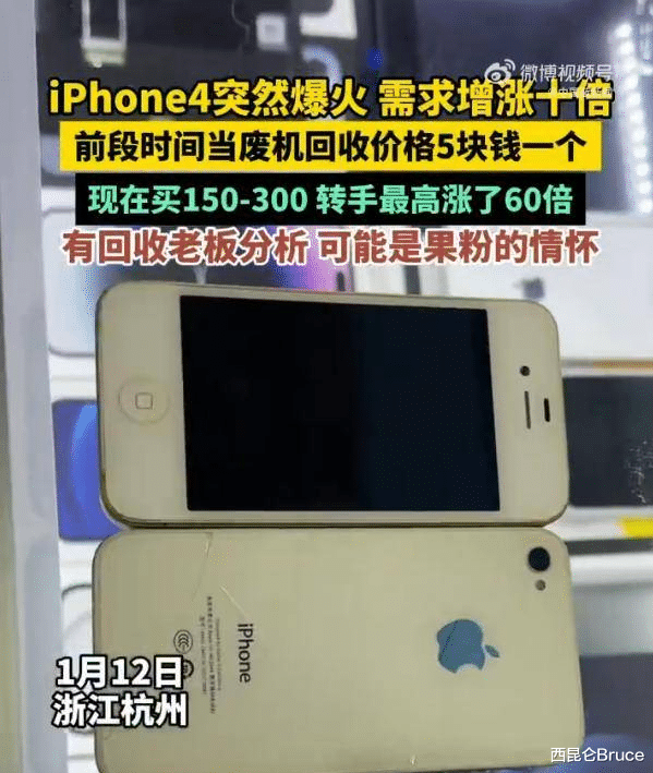 1月13号,一则关于iPhone 4回收价暴涨60倍的新闻,冲上热搜,引发关注。