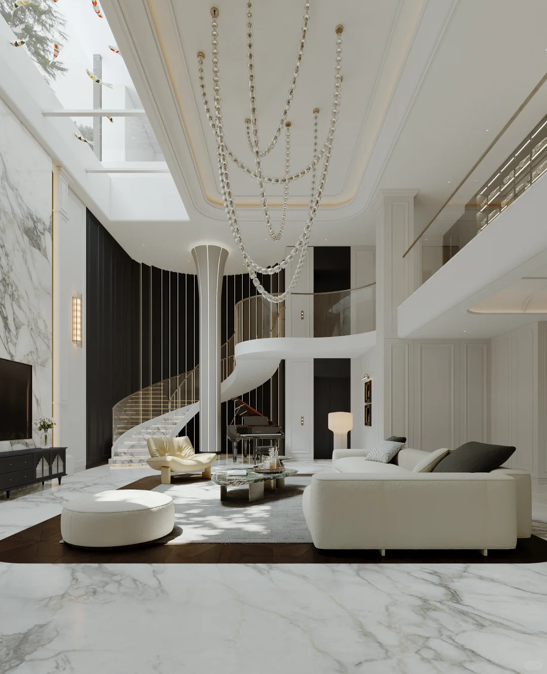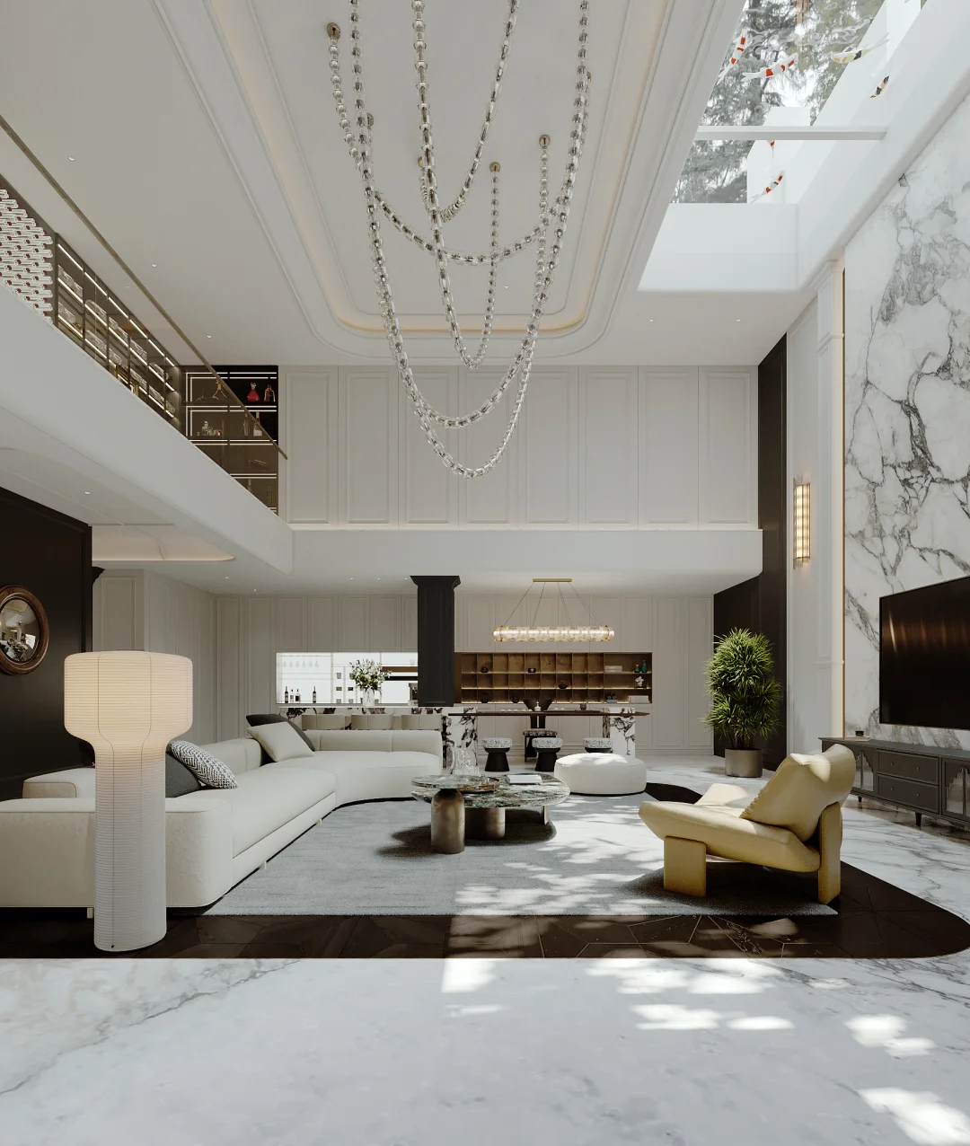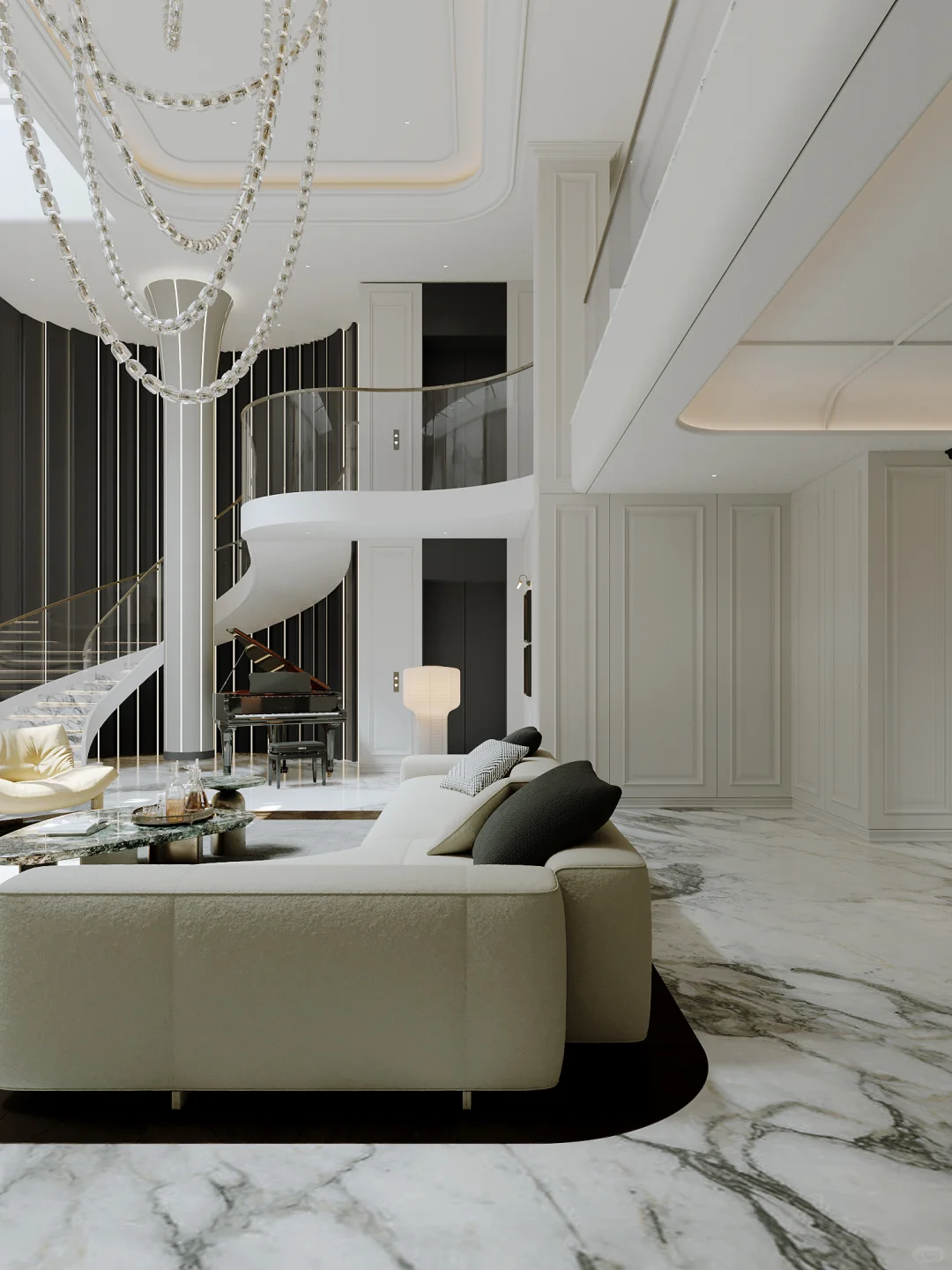 两套合院别墅打通,法式轻奢系别墅装修设计 香奈儿系法式别墅设计
