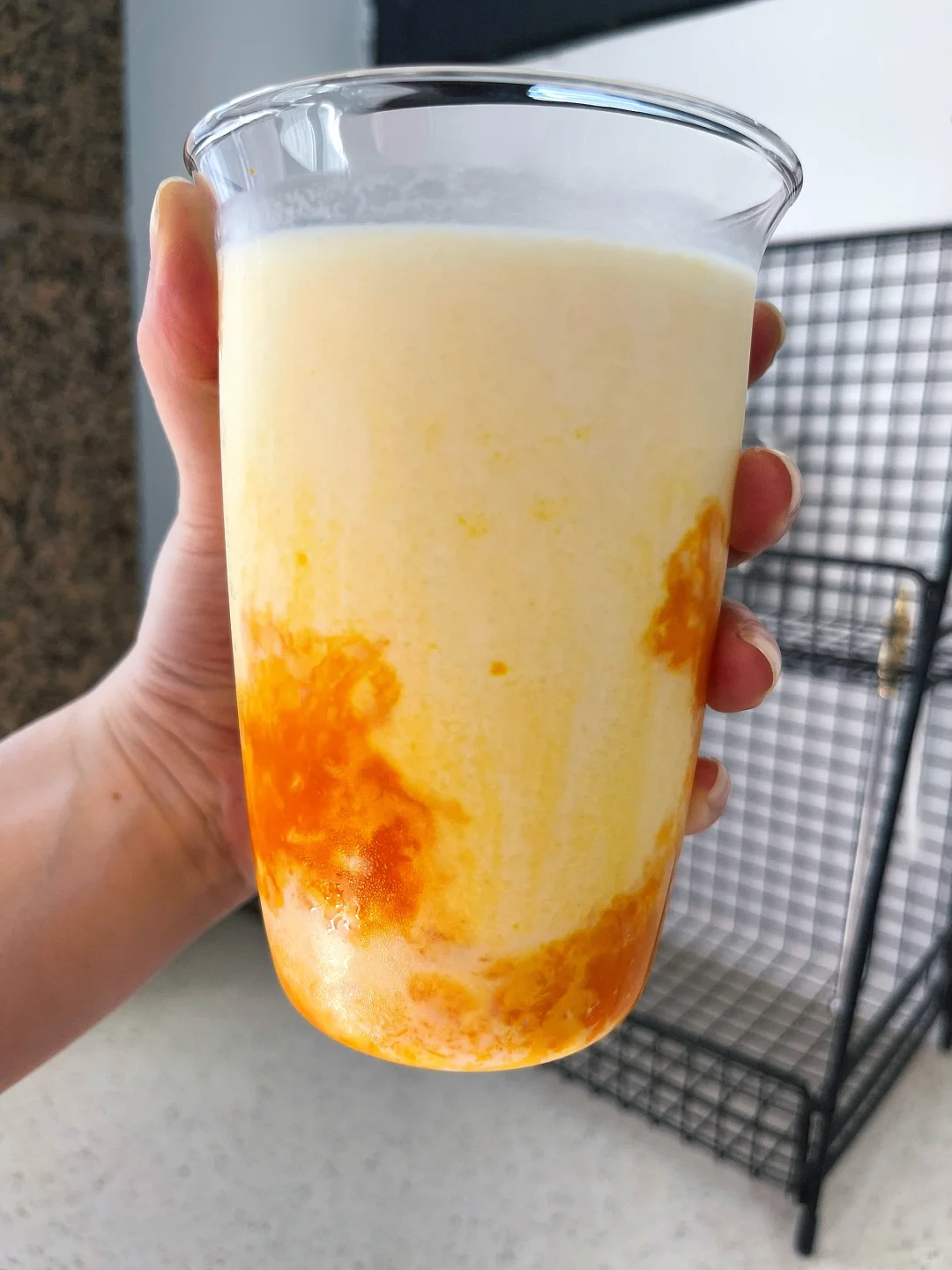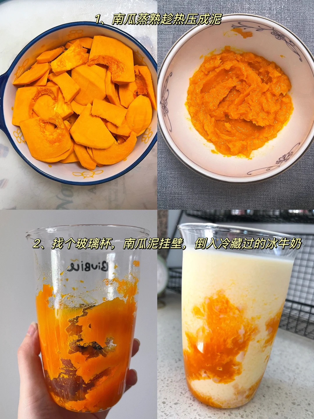2⃣️找个好看的玻璃杯,南瓜泥随意挂壁