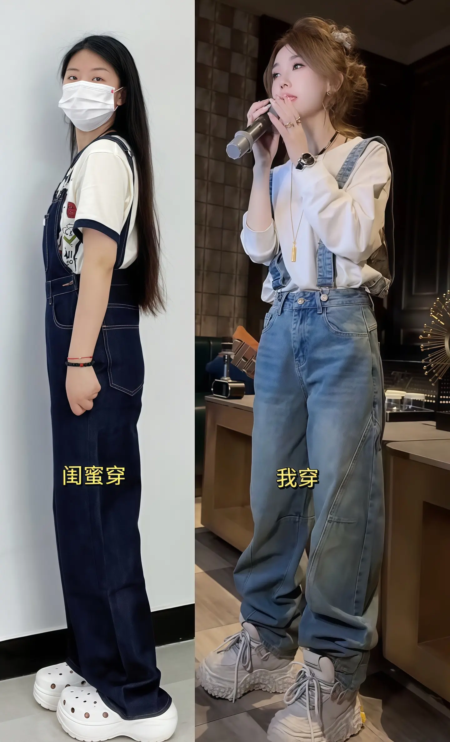 春日减龄神器!高腰显腿长,直筒阔腿遮瑕疵,背带设计超减龄,解锁春日慵懒...