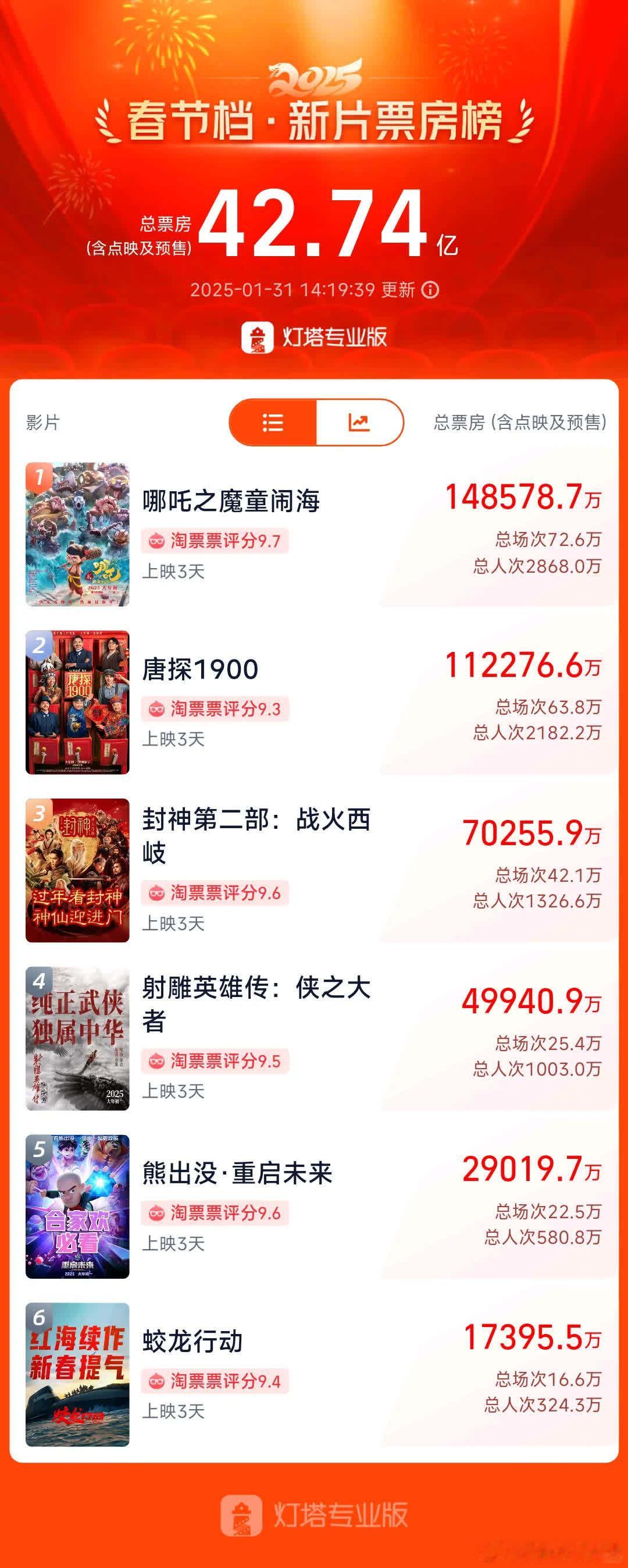 哪吒吸金迅猛,大盘将罄。其势如虹,能否问鼎中国影史票房之巅?[PK]