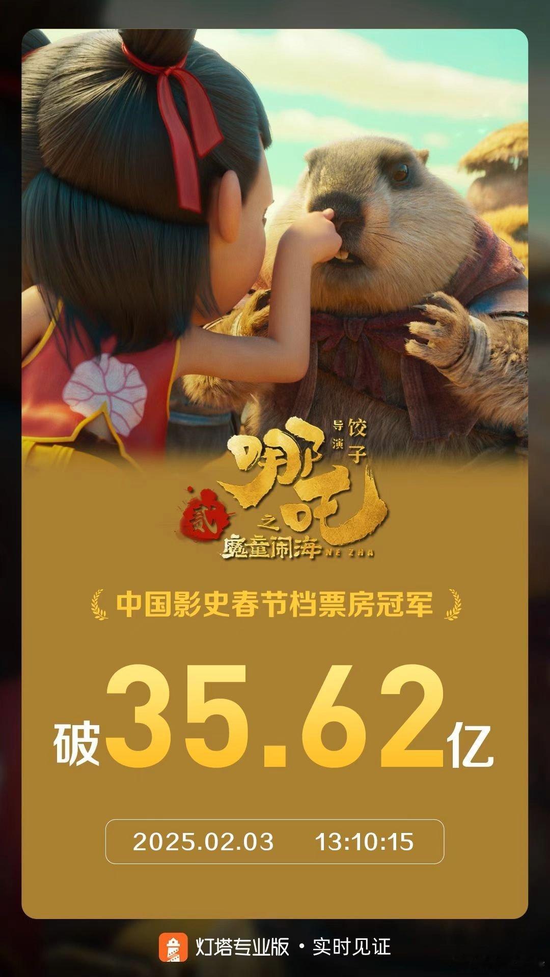 哪吒之魔童闹海影史春节档票房冠军 截至2月3日13时《哪吒之魔童闹海》票房已达3