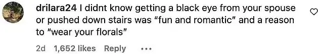 “我不知道被你的另一半打得眼圈乌黑或者被推下楼梯,是这么的“有趣和浪漫”,还成了你“能穿碎花裙”的理由。”