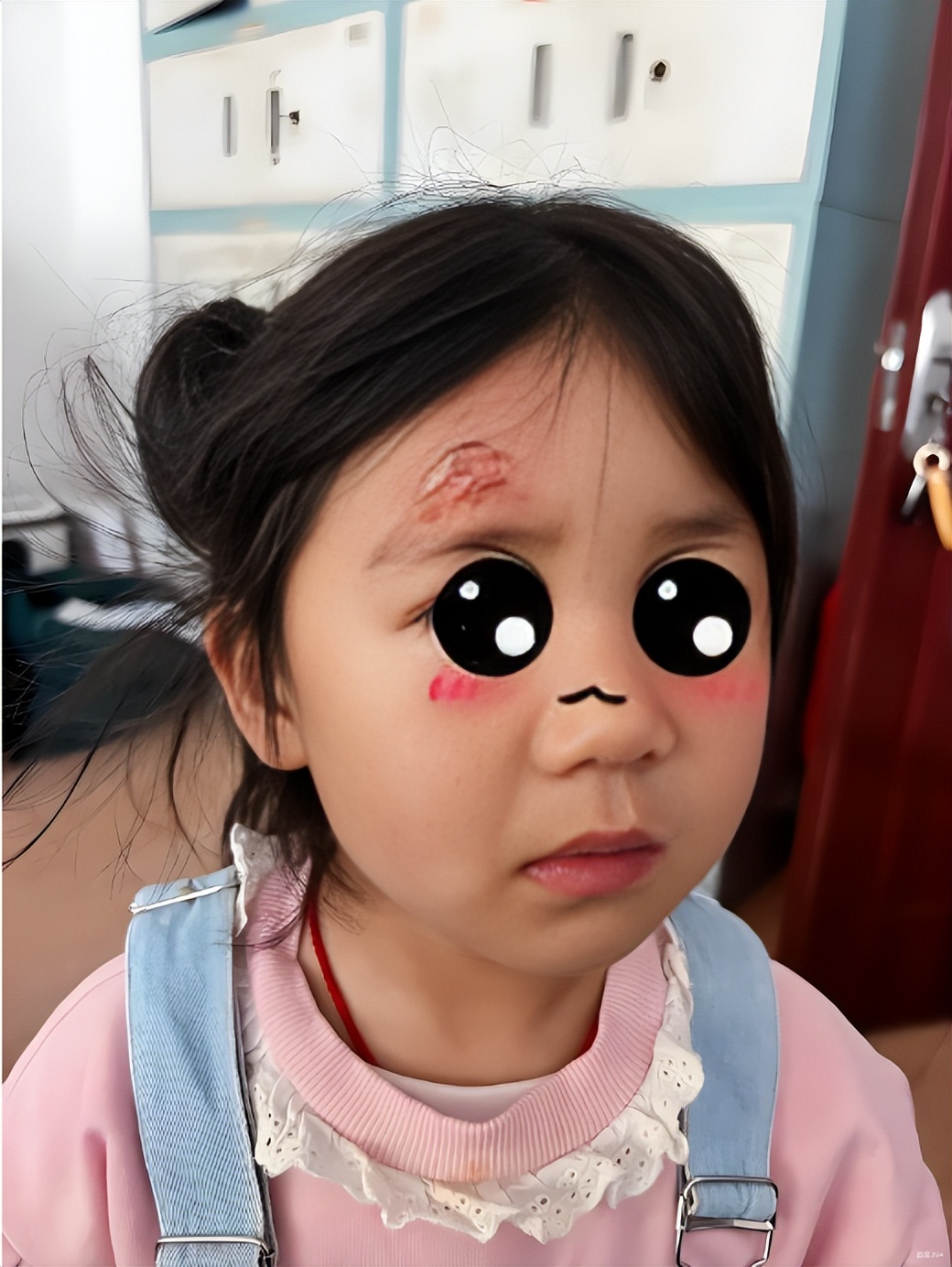2025年11月,湖南3岁女童朵朵(化名)在幼儿园节日活动中,被贴上网购的“太阳贴纸”。当晚脸颊出现红斑,家长误以为是暂时性刺激未作处理。几天内症状急剧恶化:红斑扩散、水疱溃破,最终形成糜烂结痂面。经湖南省儿童医院诊断,朵朵患急性接触性皮炎,面部皮肤严重受损。