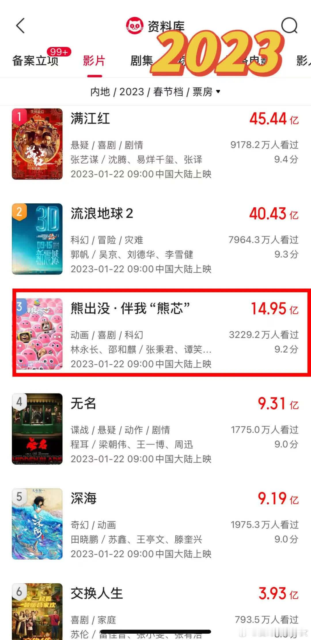 春节档里,《熊出没》堪称闷声发大财的典范。它每年都有固定受众,票房稳定,稳居年度