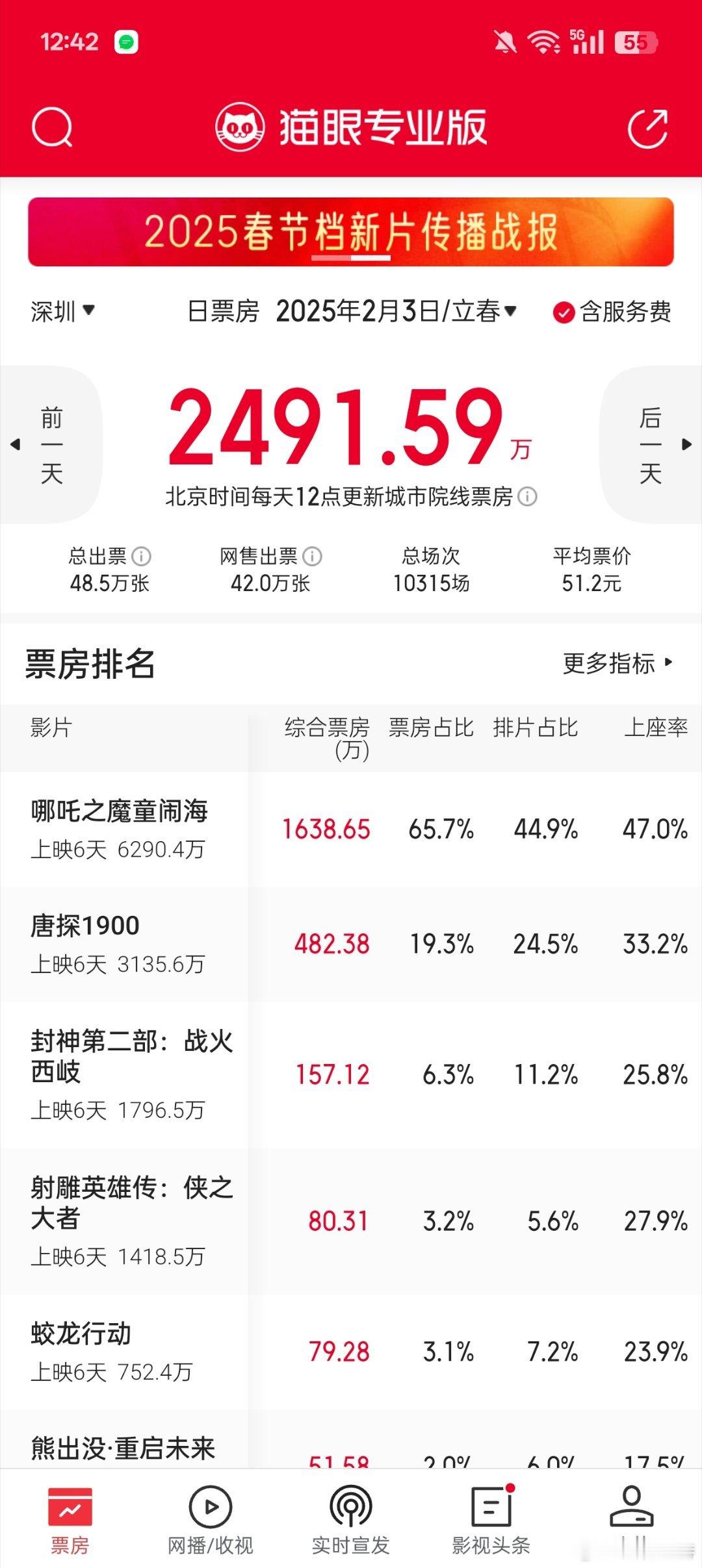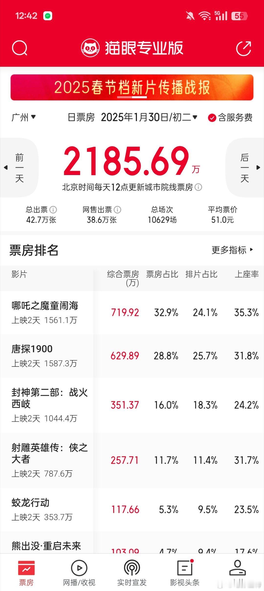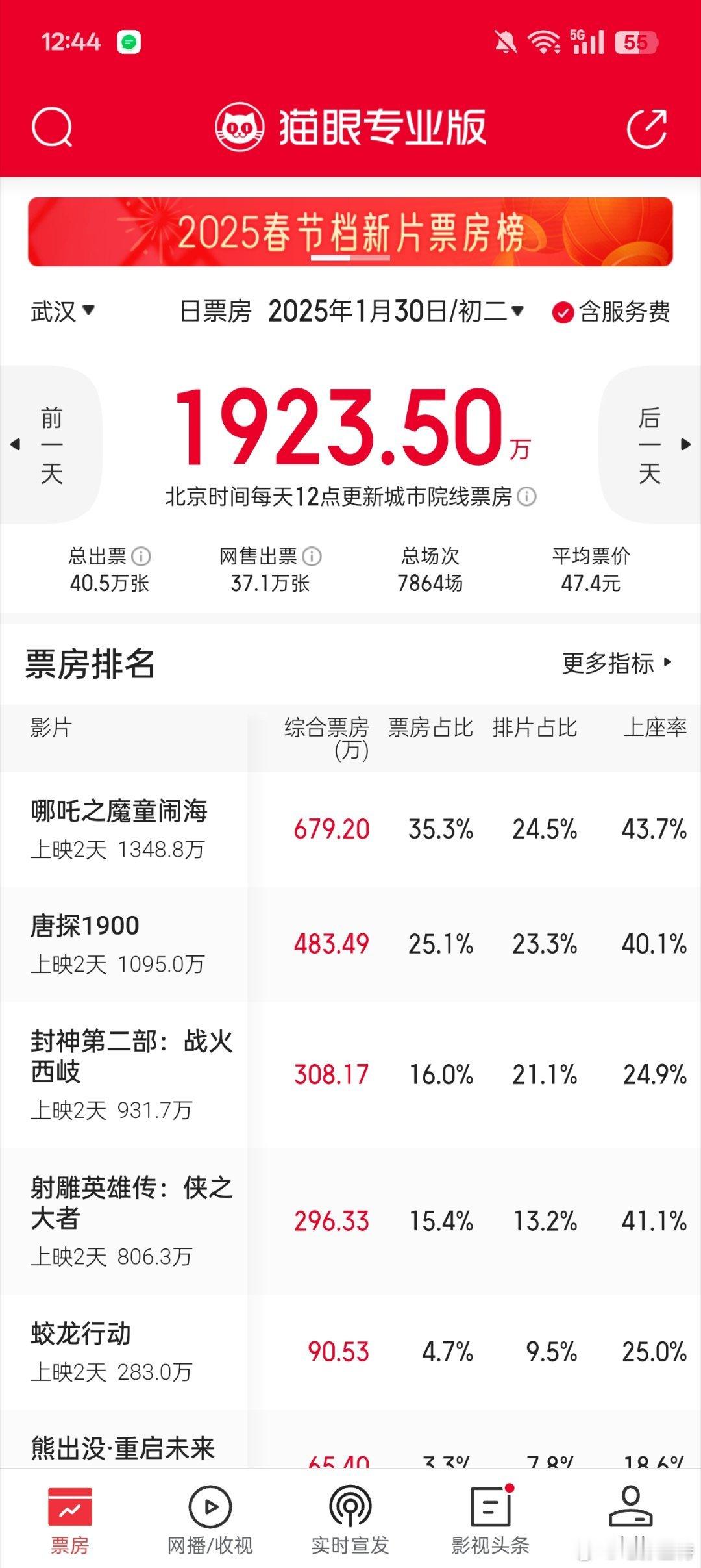 蛇来运转春节档 听听温特怎么说 返程回流再加上《哪吒2》票房逆增长。昨天广深成都武汉等地票房比年初二还高。