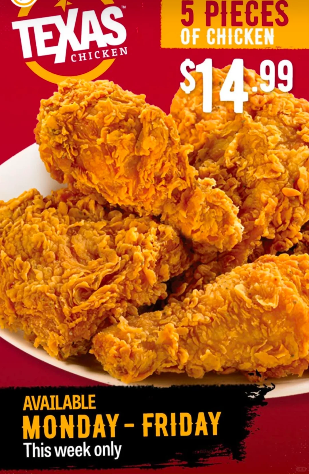 就说过年和炸鸡最配了[暗中观察R] 本周!德州炸鸡5块鸡$14.99[哇R]炸鸡自由[大笑R] 关注我,下一篇更精彩