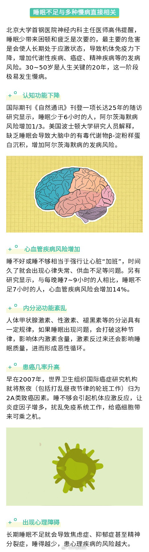 #日常实用大全#【#缺觉让全身都处于炎症状态#】每天少睡几个小时会怎样?哈欠连天、提不起精神、眩晕……除了这些“表面”的危害,更可怕的是“看不见”的。刊登在美国科学期刊《Cell(细胞)》上的一项研究显示,睡眠不足会引发全身炎症风暴。