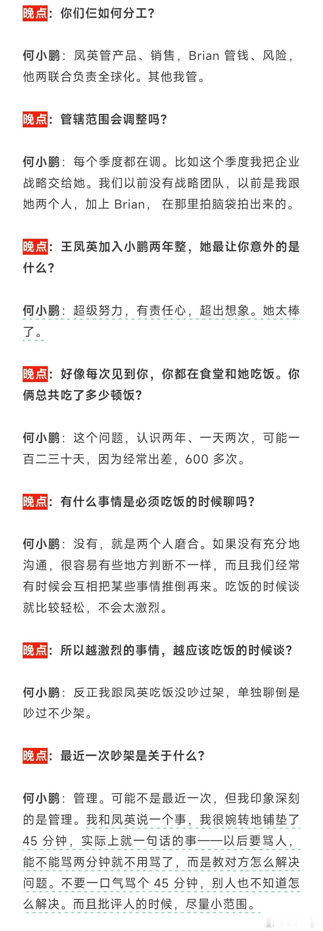 凤头刚入职的时候,我周六带朋友去总部门店试驾,竟然看到凤头在加班,当时觉得这么拼的女领导,不愧是铁娘子啊!结果周天带家人去大学城露营又看到凤头去小鹏汇天调研,看到赵总接待的!当时就在想,职业经理人难道都不休假的嘛?