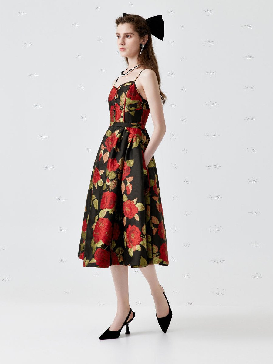 玫瑰花图案点缀浪漫艺术氛围感满满 包布纽扣色系统一小巧精致复古优雅
