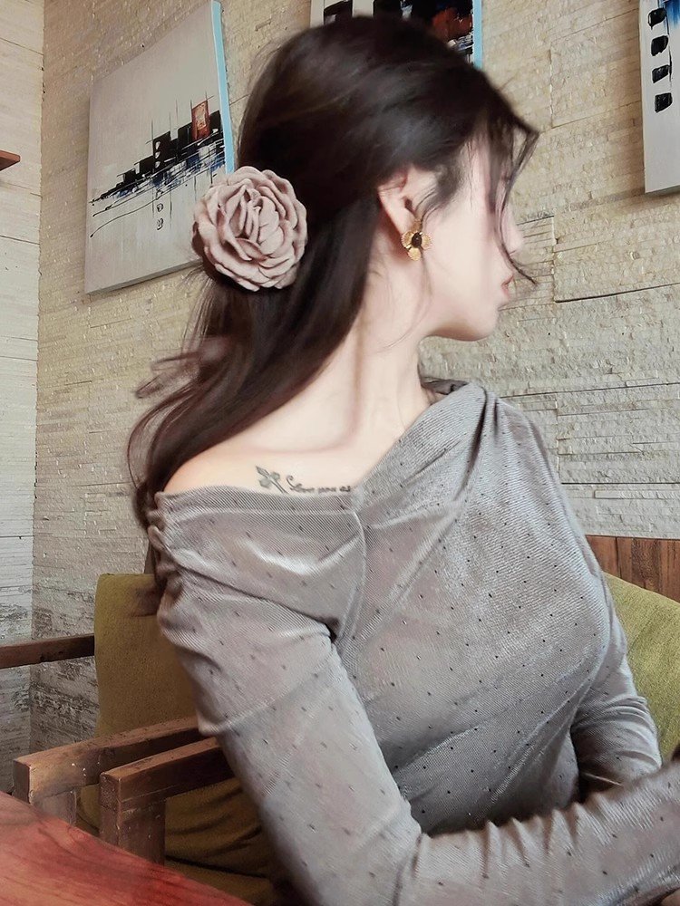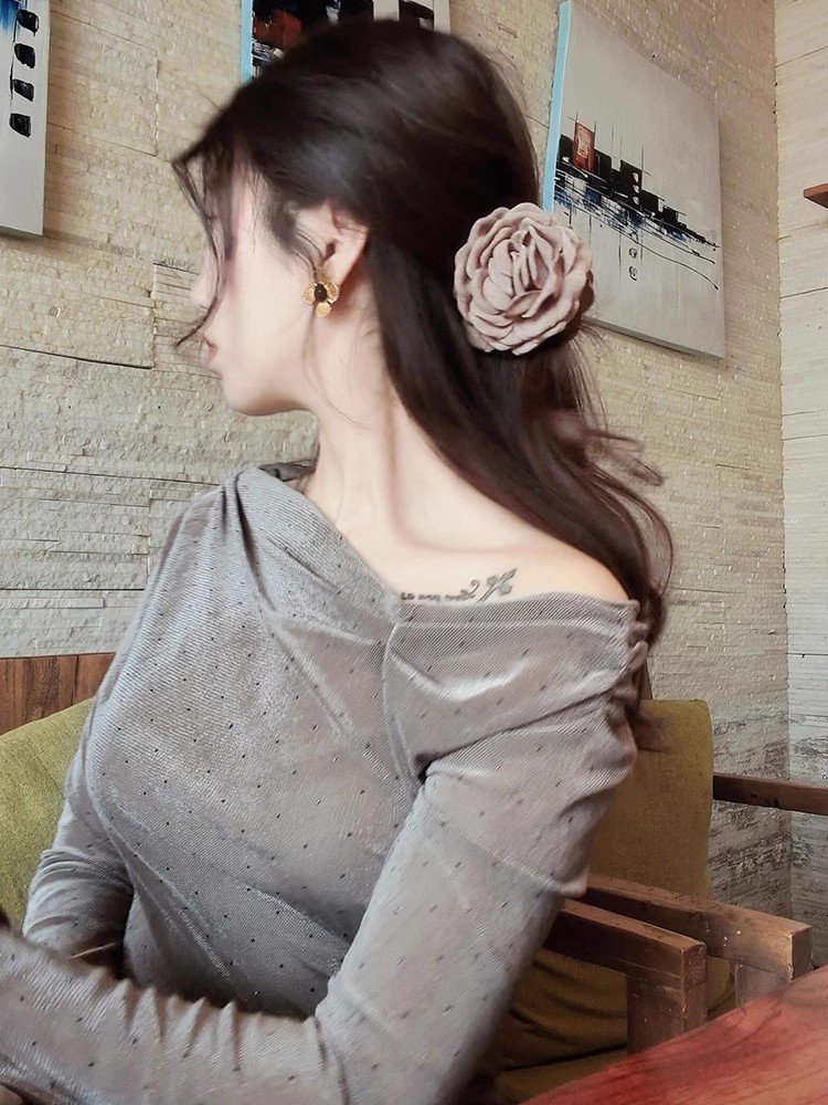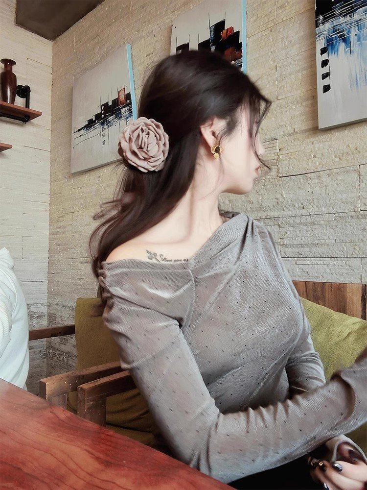 高级感内搭甜辣灰色波点长袖t恤女早春季修