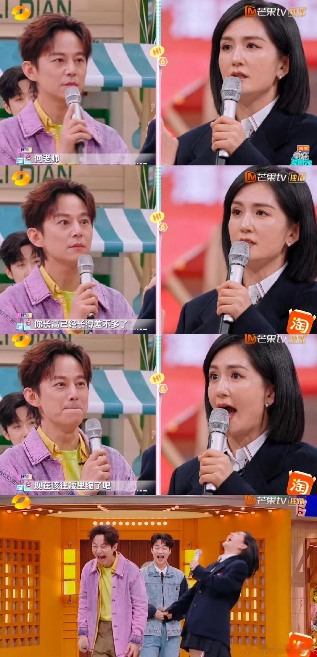 何炅谢娜没个几十年交情都不敢这么玩 你好星期六 瞧瞧这对老友,何炅谢娜真是敢言敢玩!炅哥调侃:谢娜,你家三个宝贝都只迷爸爸,不把你当回事嘛?谢娜搞笑回答:何老师,你个子已经“够高”了,接下来是不是该试试“矮”的滋味了?这就是真正的朋友间的自在和欢乐!