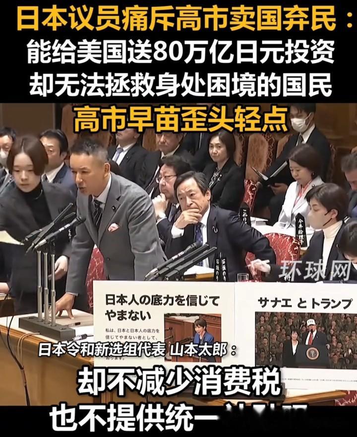 与对美“慷慨解囊”形成刺眼对比的,是日本国内民生的窘迫困境。山本太郎在国会现场的质问振聋发聩:“30年来日本持续衰退,这种现状一直没有解决。我们能给美国送上80万亿日元的投资,却无法拯救身处困境的国民,这难道不是把卖国弃民做到了极致吗?”这番话道出了普通日本民众的心声——当前日本物价持续上涨、薪资长期停滞,民众生活压力与日俱增,而政府既不愿降低高企的消费税,也不肯推出统一民生补贴,对民众的基本诉求视若无睹。
