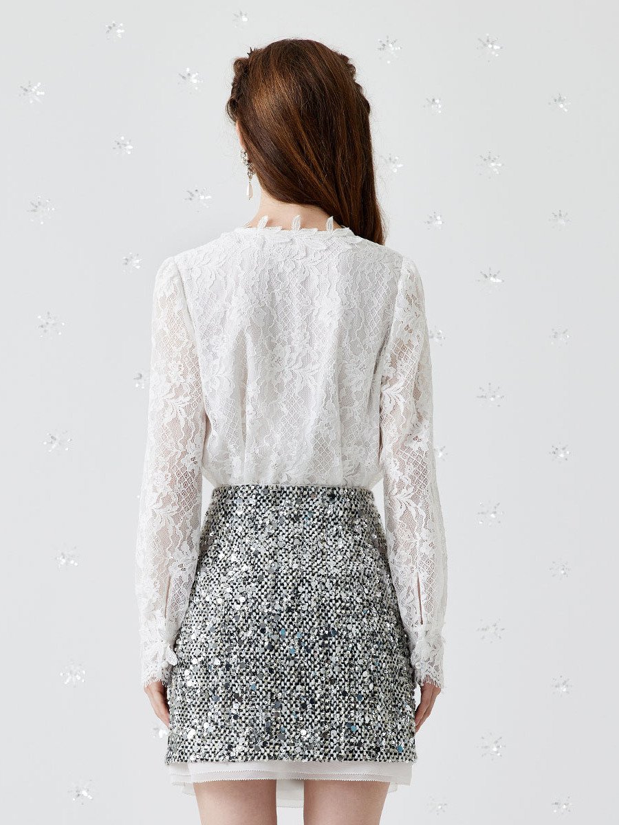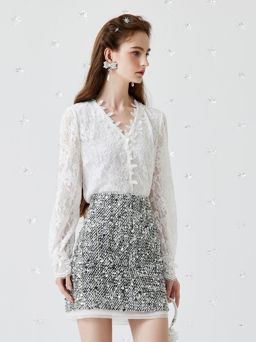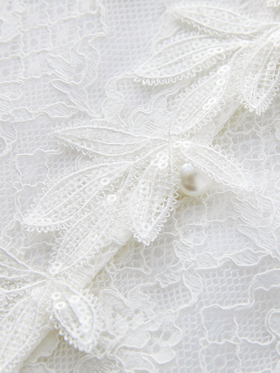 珍珠纽扣结合立体花朵细腻复古 立体花瓣领边装饰华美精致柔美