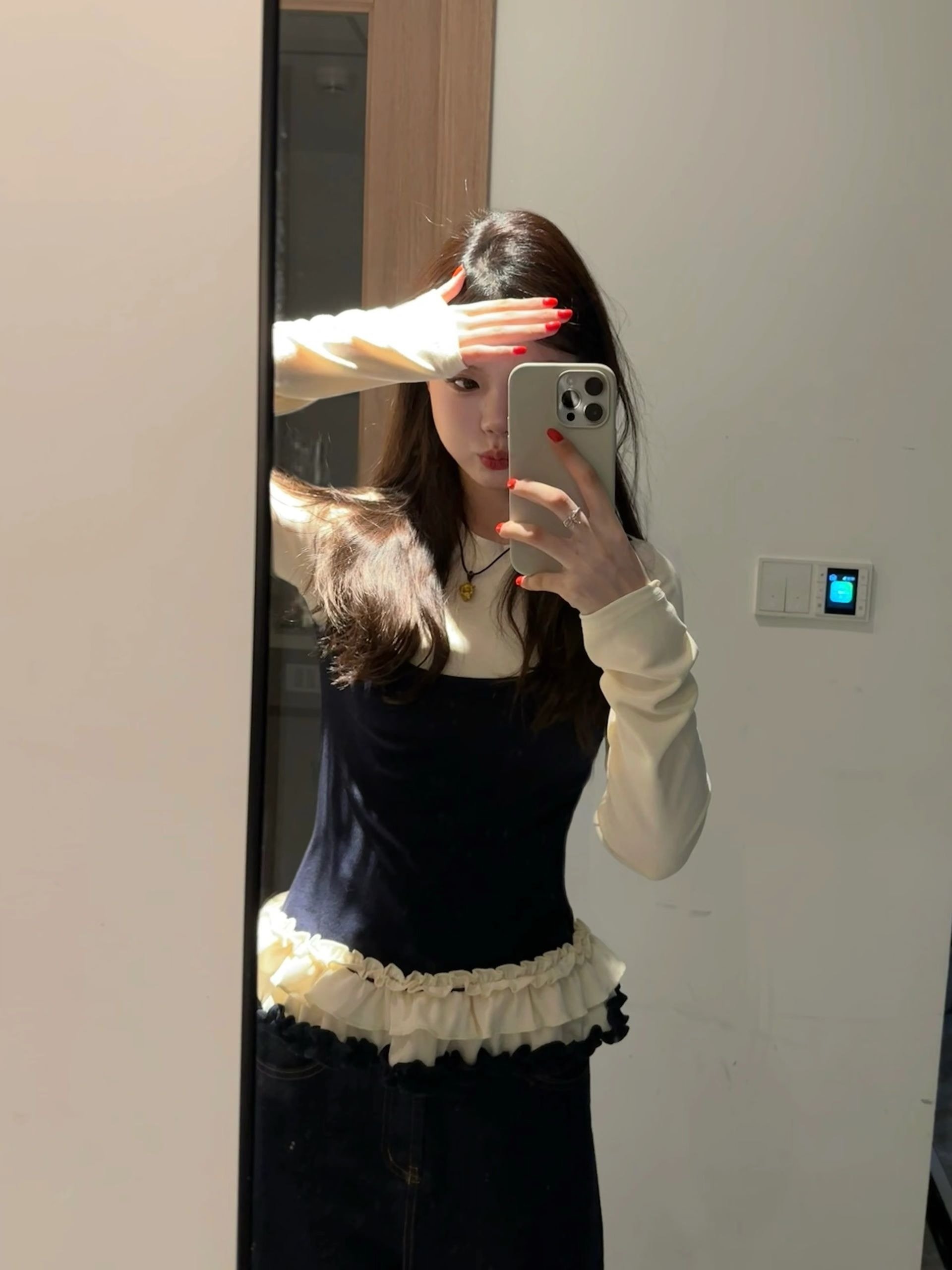 灰色假两件吊带长袖t恤女早春修身紧身打底