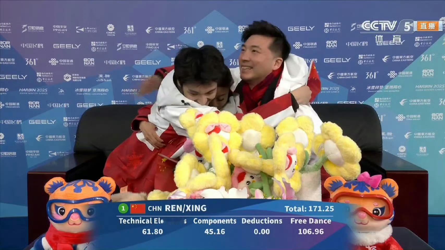 亚冬会 任俊霏邢珈宁自由舞106.96分 在2025年哈尔滨亚洲冬季运动会花样