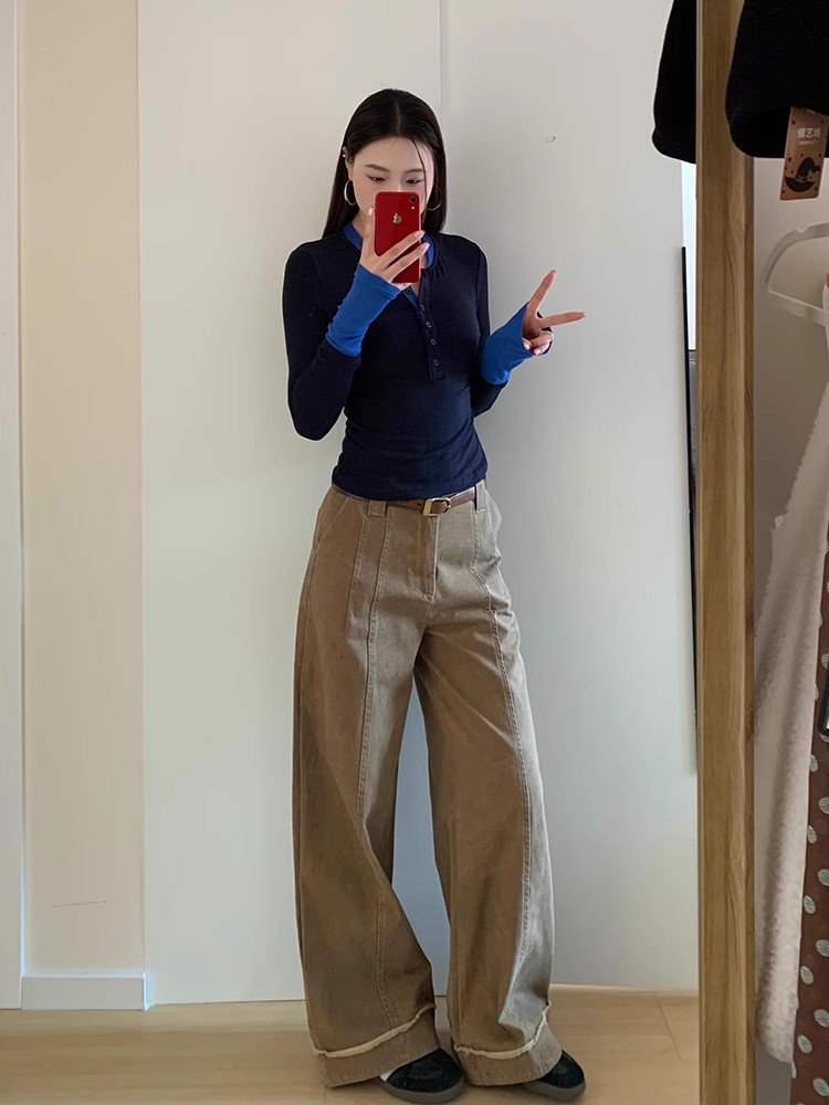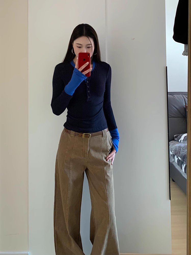 韩系半开领穿搭撞色针织衫上衣女早春202