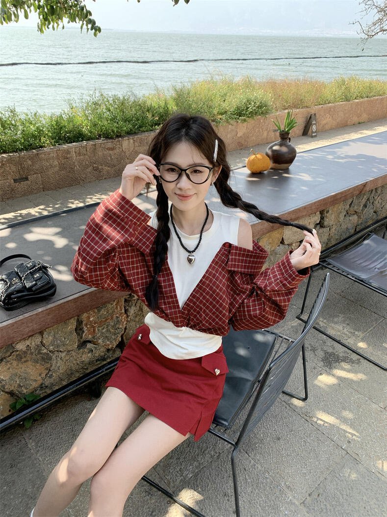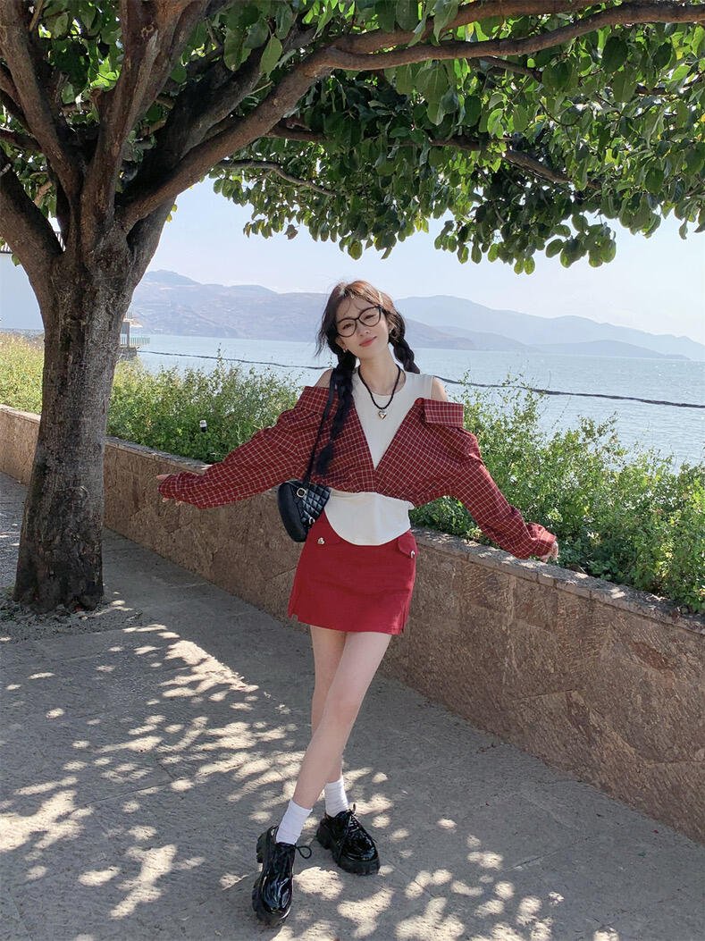 红色包臀短裙春天这样叠穿好少女感!!!!