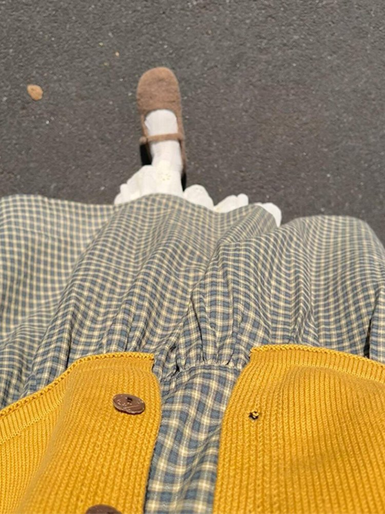 2025新款超火绿色格纹连衣裙子衬衫开春穿搭一整套装女学院风长裙
