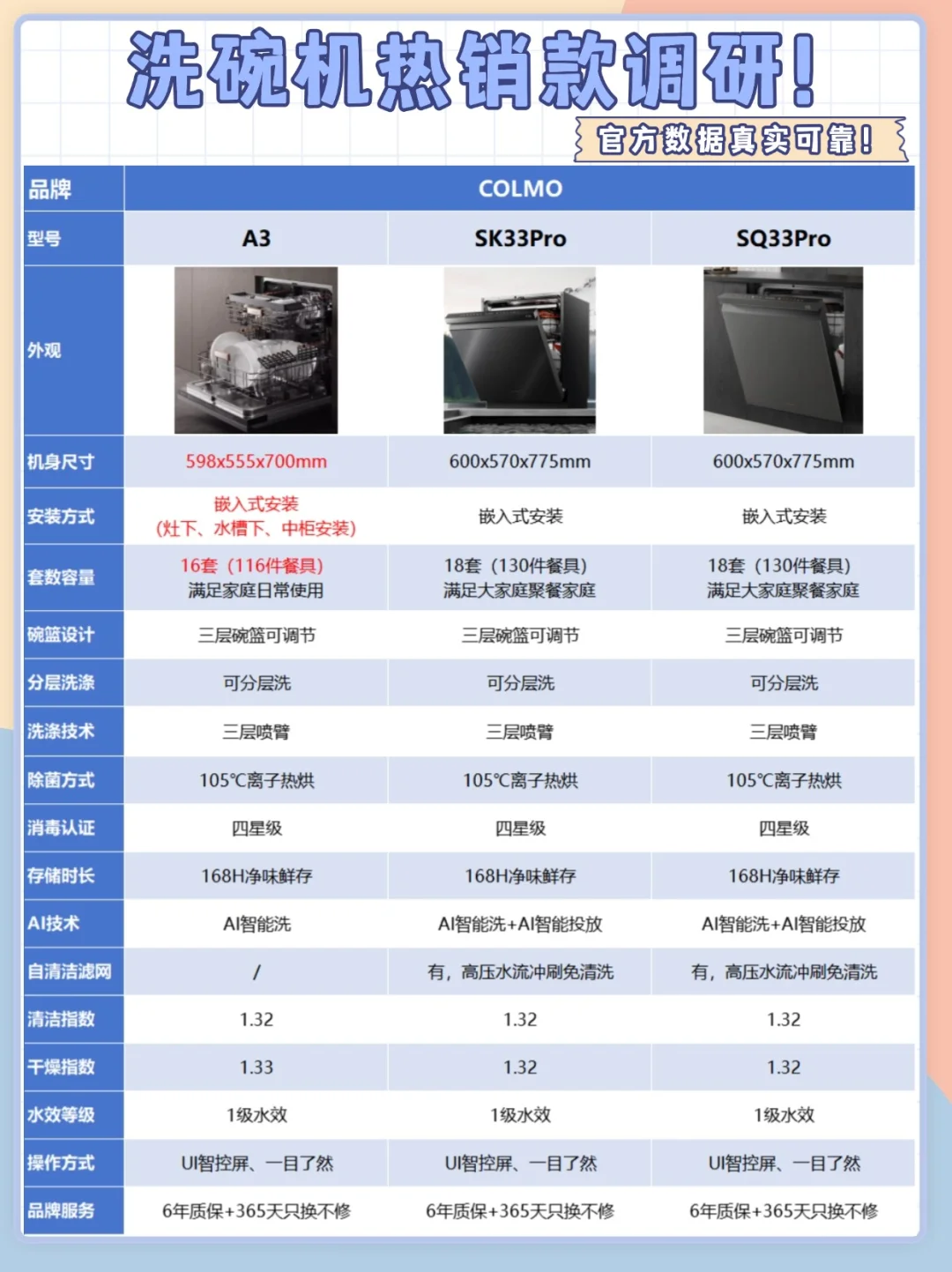 洗碗机大牌热销款,关键数据来源于官方,真实可靠哦。