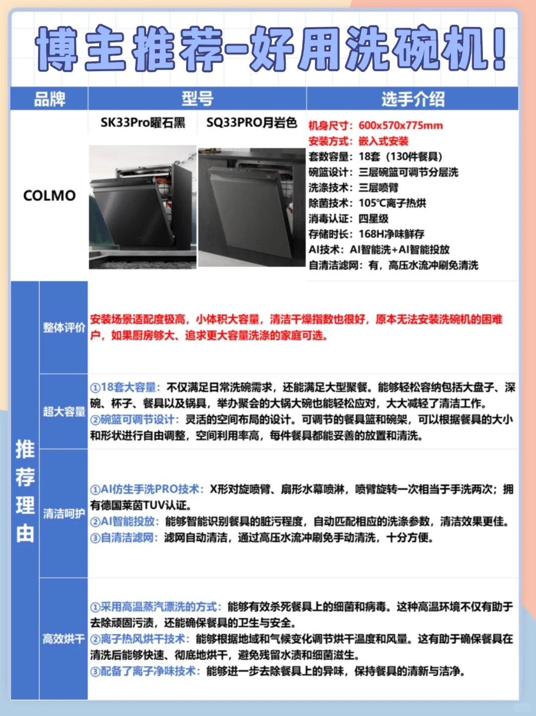 洗碗机优秀机型郑重推荐:COLMO洗碗机A3、COLMO SK33Pro曜石黑、COLMO SQ33Pro月岩灰,综合功能、价格、服务体验多方面剖析推荐。