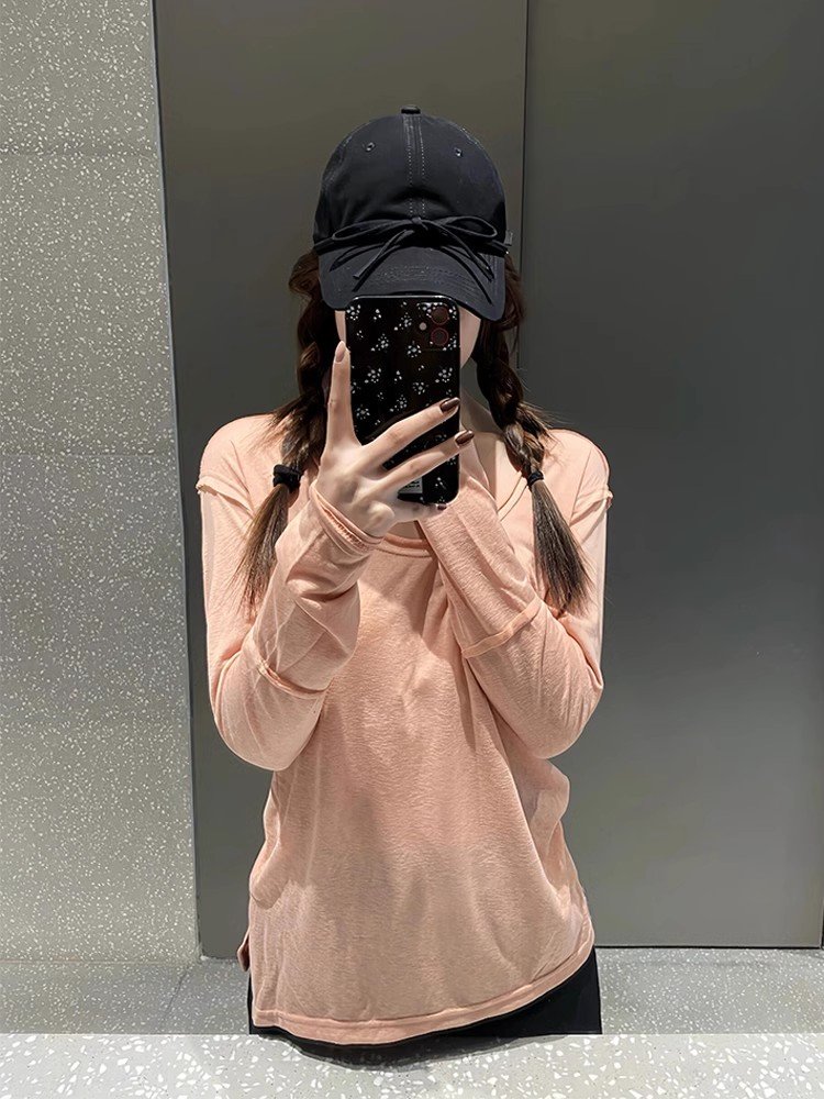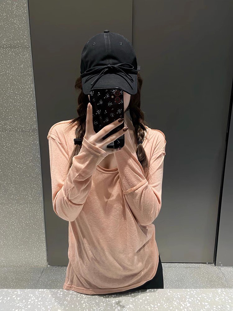 小个子粉色卷边独特绝美小上衣女春秋款外搭