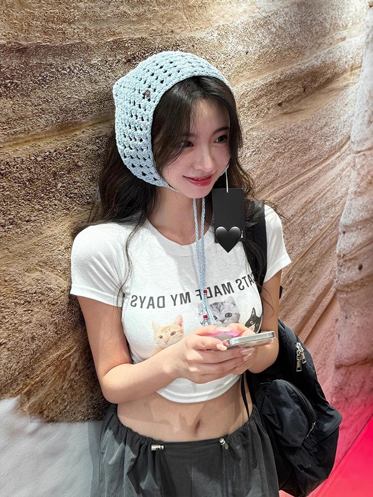 白色掐腰设计感小众短款圆领上衣女早春韩系