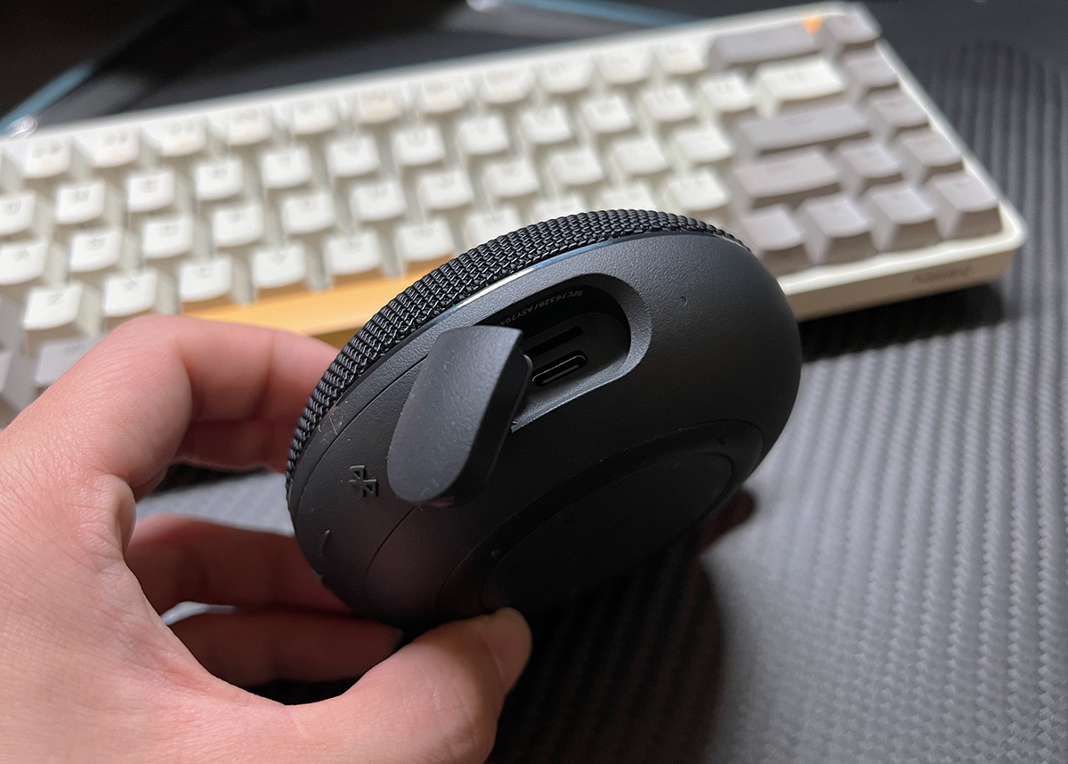 为了进一步方便携带/佩戴,音响上还配备了一个巨大的、可拆卸金属挂扣,可以挂在任何你想挂的地方,有了这个挂扣,无论是携带还是收纳都非常的方便,像我洗澡的时候,都是直接挂在衣钩上就行,在浴室里听歌,氛围感会更强;