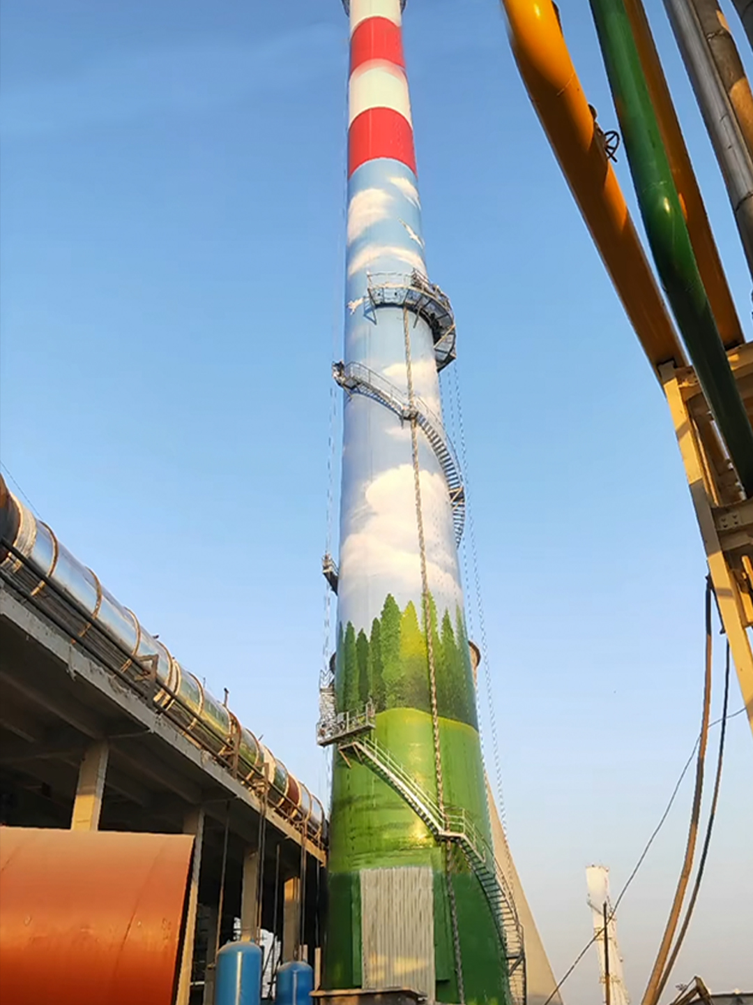 3.高空砌筑安全风险高:烟囱高度达 50m,作业人员高空操作空间有限,垂直运输材料存在坠落隐患,且需避开锅炉运行高峰时段,施工窗口期紧张。