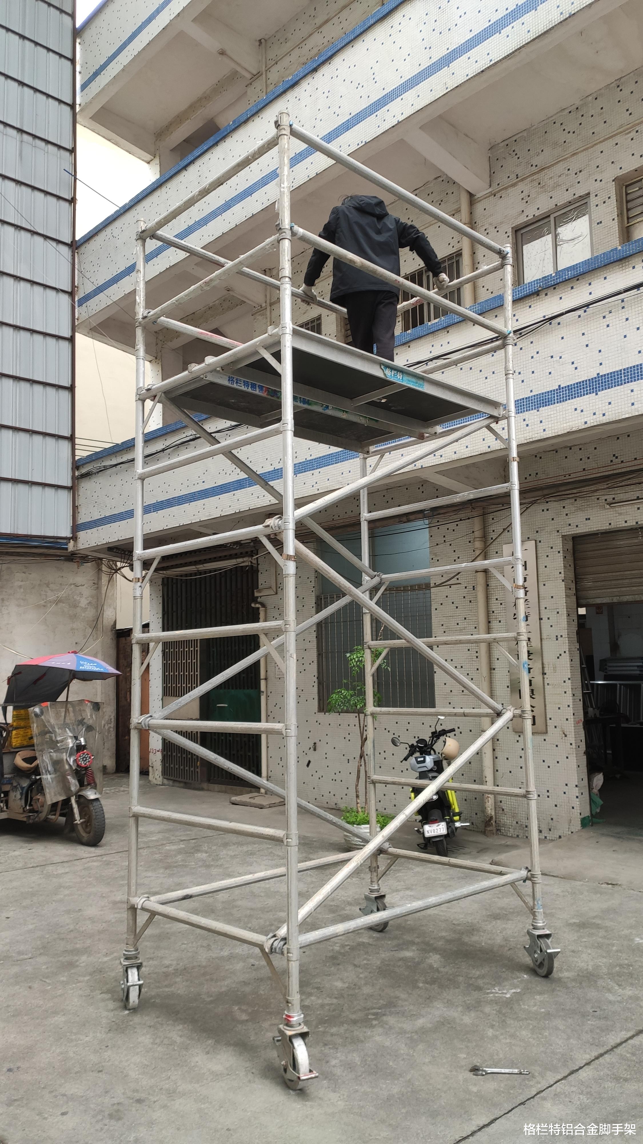 从6米高的室内吊顶维修,到12米的外墙清洗,铝合金脚手架可通过模块化配件自由调节宽度(0.75米单宽或1.35米双宽)和高度。格栏特品牌还提供带斜梯的型号,工具搬运更便捷。