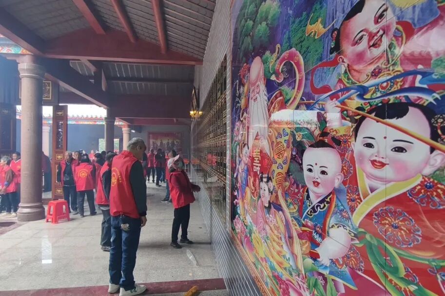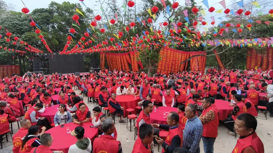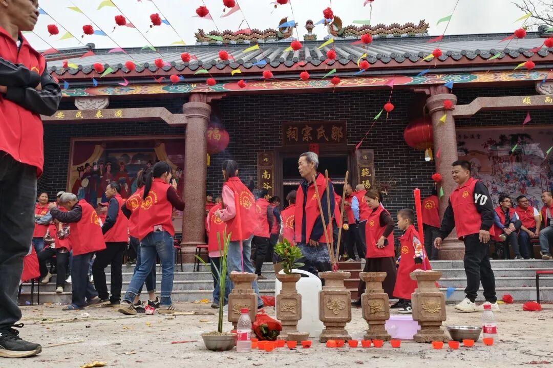 清晨,新塘村锣鼓喧天,鞭炮齐鸣,绚丽的烟花点亮天空,五彩醒狮欢腾跳跃,处处洋溢着喜庆热烈的氛围。各地宗亲扶老携幼,风尘仆仆赶来,熟悉的乡音、亲切的问候,让整个祠堂广场充满了浓浓的亲情。